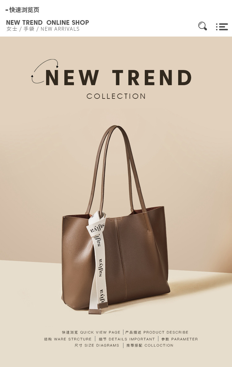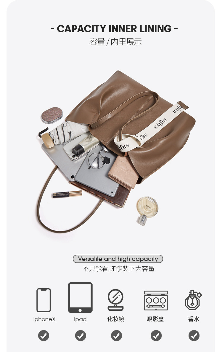 Safiya/索菲娅 二层牛皮2023新款腋下包托特包单肩包包手提包女包SF9151031Y