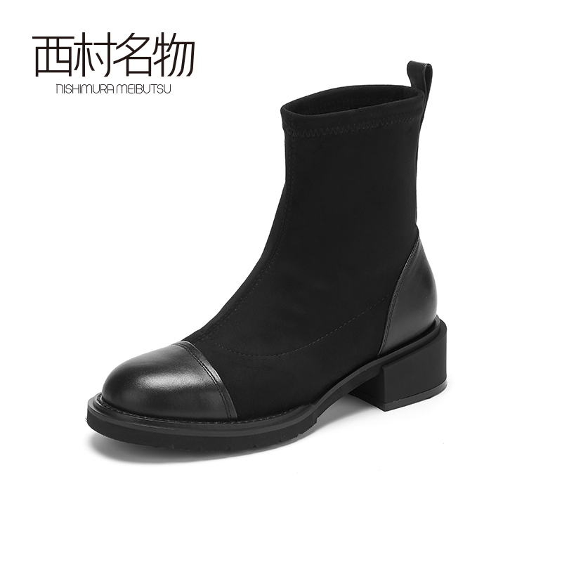 西村名物2020冬季新款短靴女中跟舒适休闲简约时装靴T20DS40171