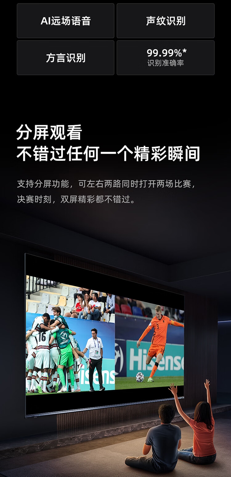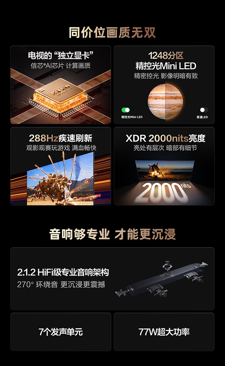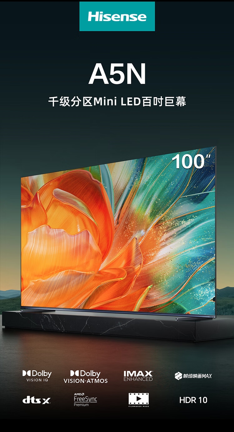 海信电视100A5N 100英寸 信芯®AI芯片 1248分区Mini LED 288Hz疾速高刷 XDR 2000nits亮度 平板电视机 100英寸