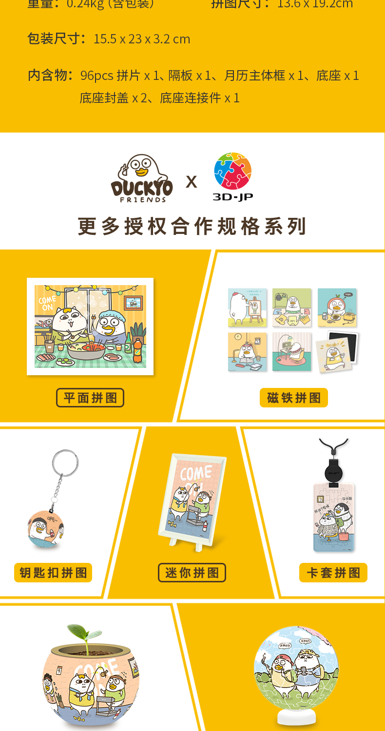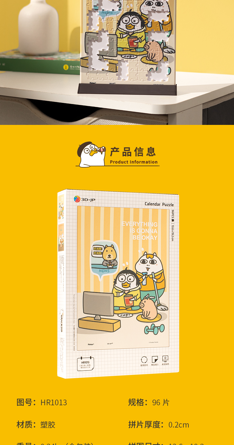 【折扣商品 不退不换】【折扣商品 不退不换】96片 单季月历 塑料拼图HR1013 人气形象小刘鸭-慢悠悠的日常