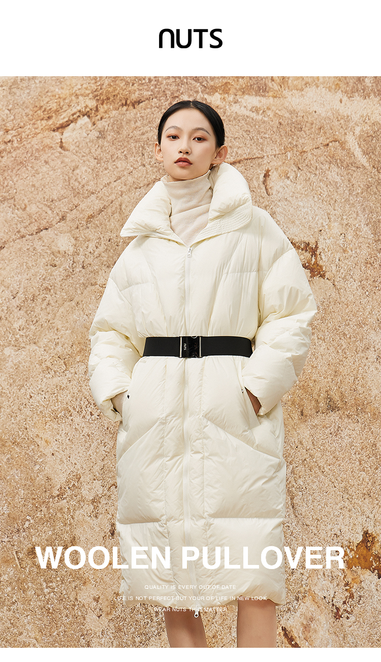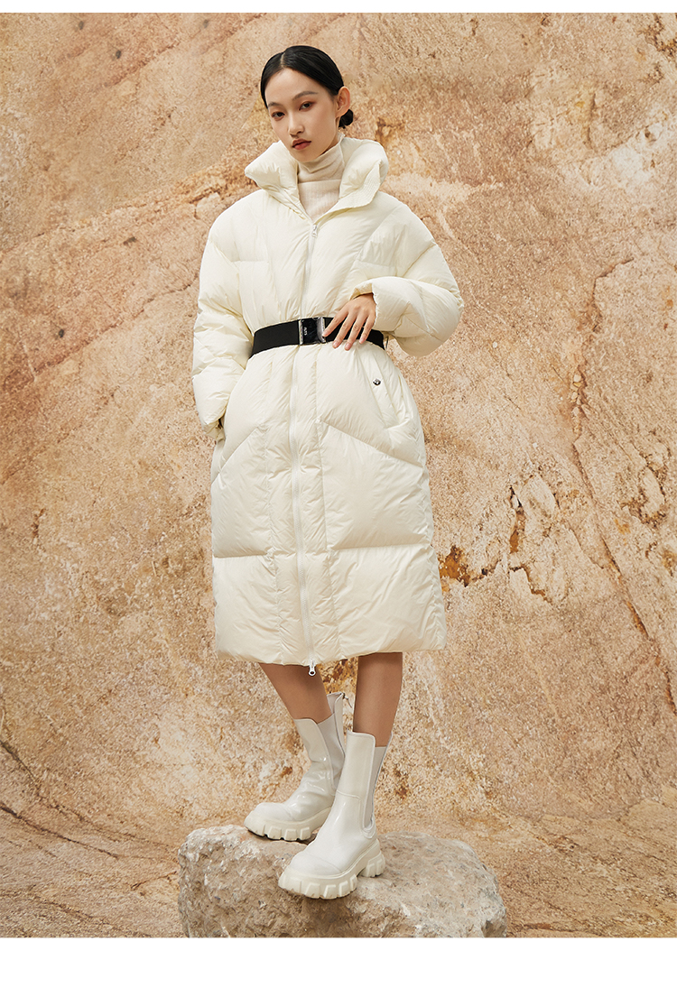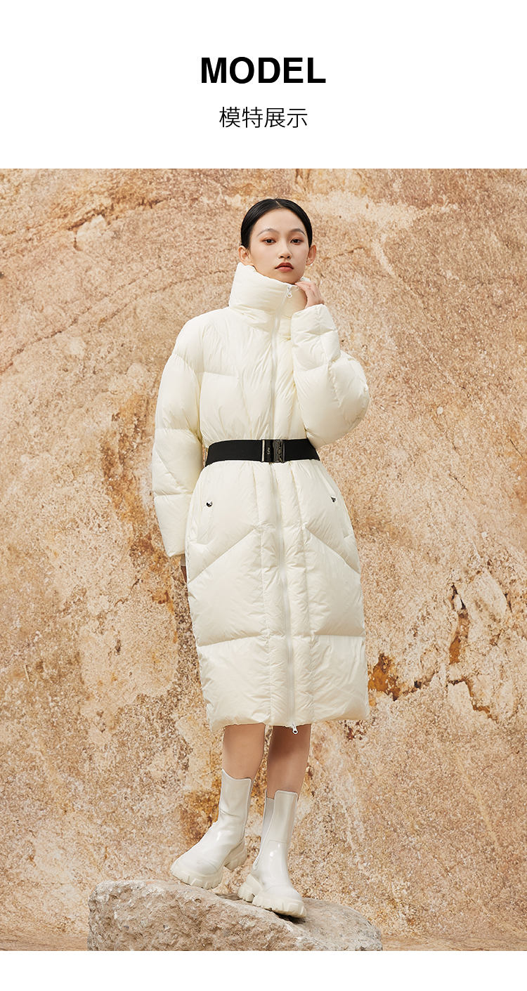 NUTS冬季白色简约收腰气质立领加厚保暖鸭绒长羽绒服女344091011