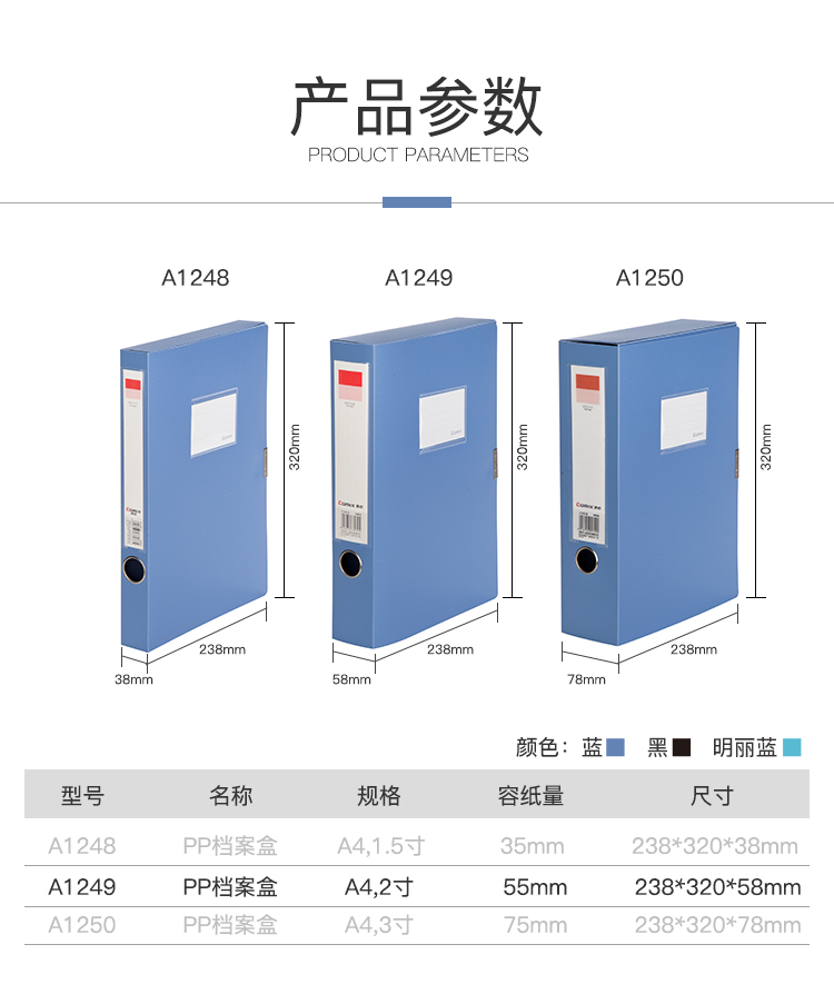 齐心档案盒A1249/蓝色