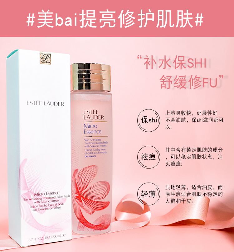 【全球购】雅诗兰黛微精华樱花原生液200ml赋活爽肤水收毛孔去闭口