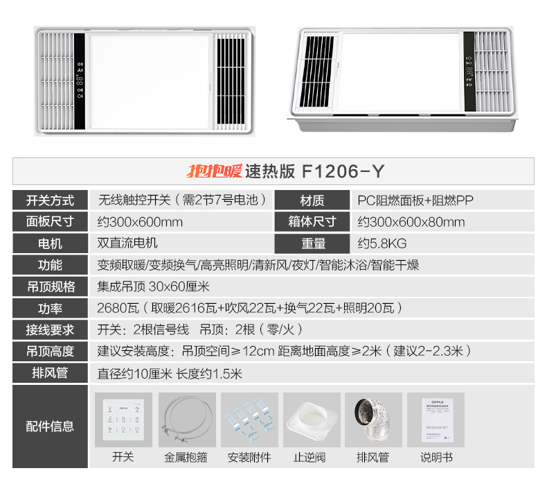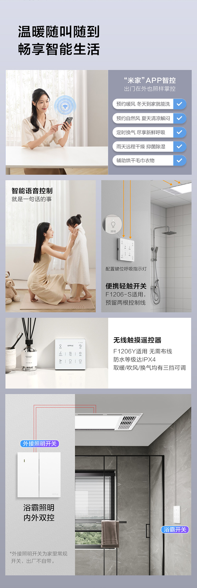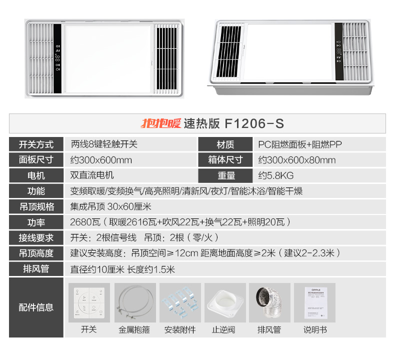 爆款🔥欧普(OPPLE)恒温风暖浴霸灯浴室取暖照明排气扇一体卫生间集成吊顶F1206