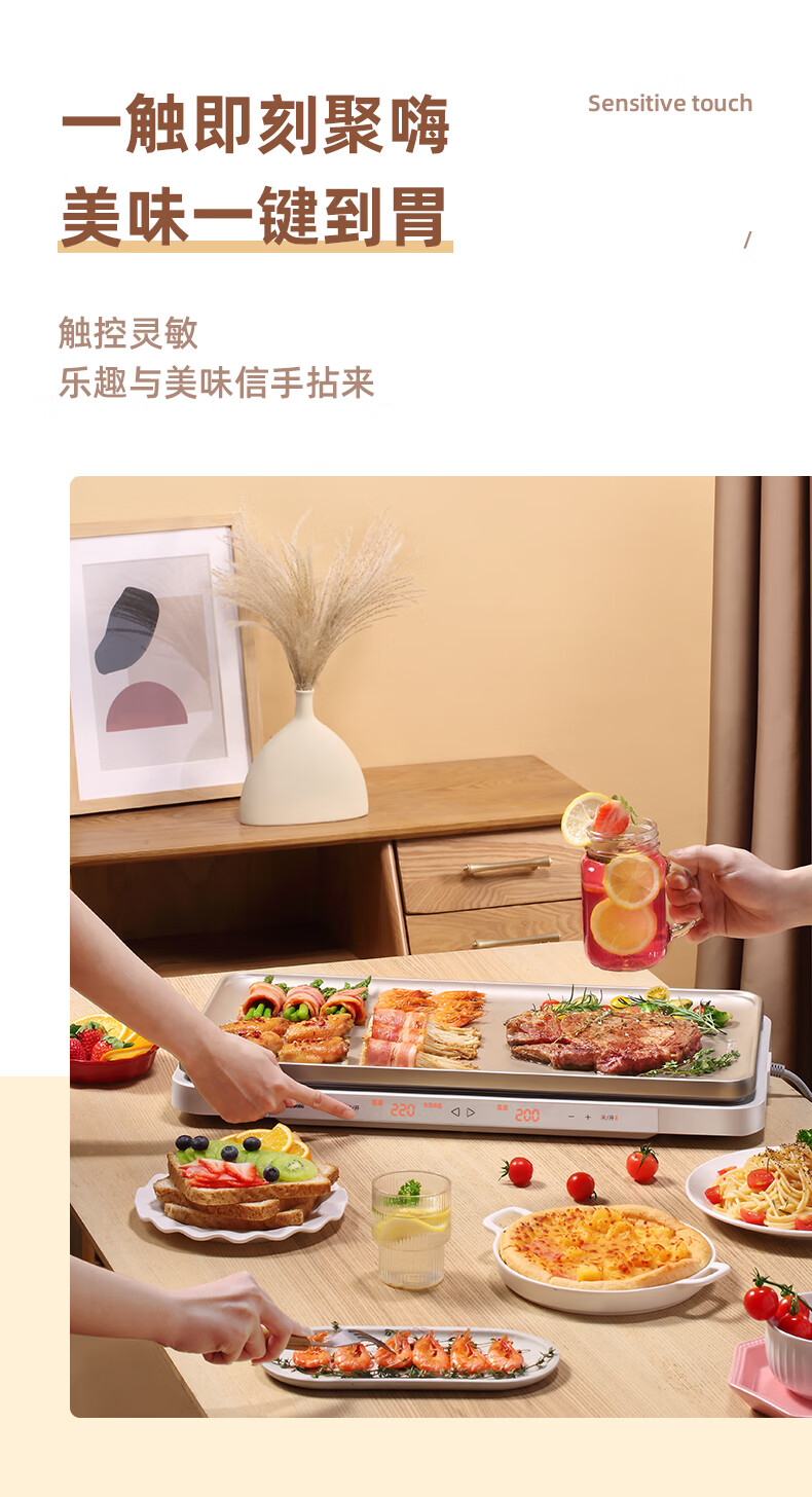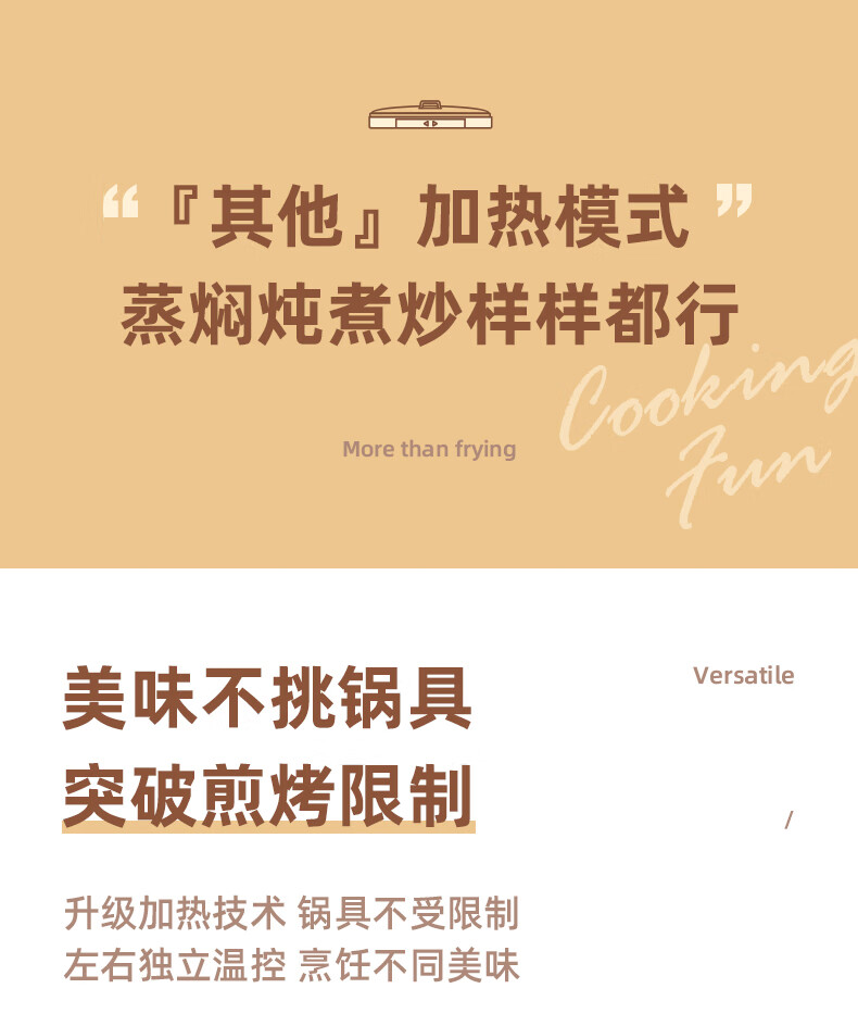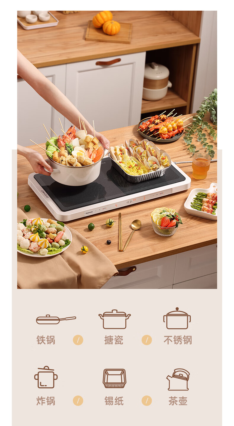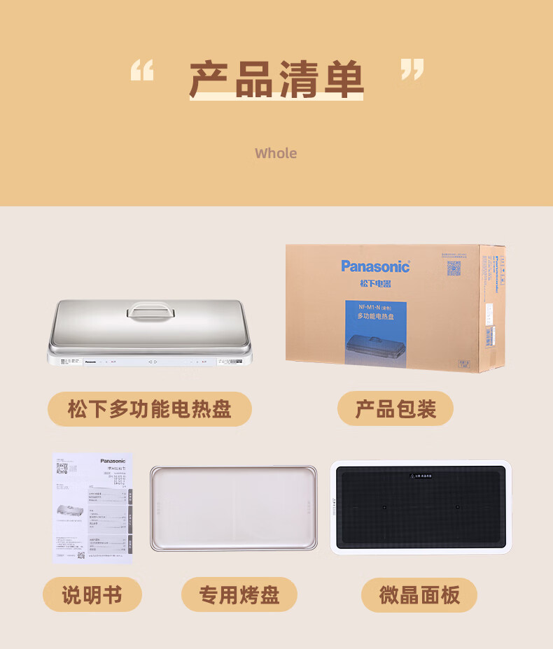松下(Panasonic)金色 多用途锅 聚嗨盘 网红锅 多功能锅 料理烧烤火锅一体锅 左右独立控温 NF-M1-N【金色】标准版 2L