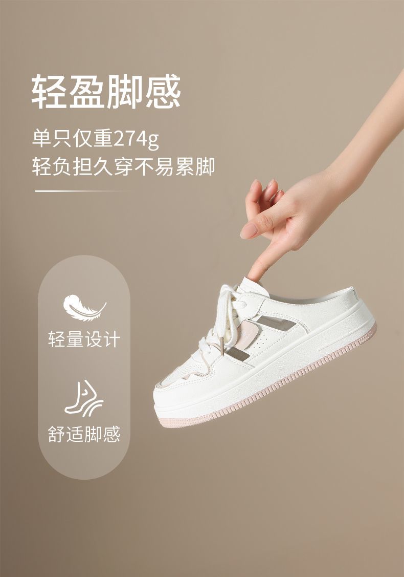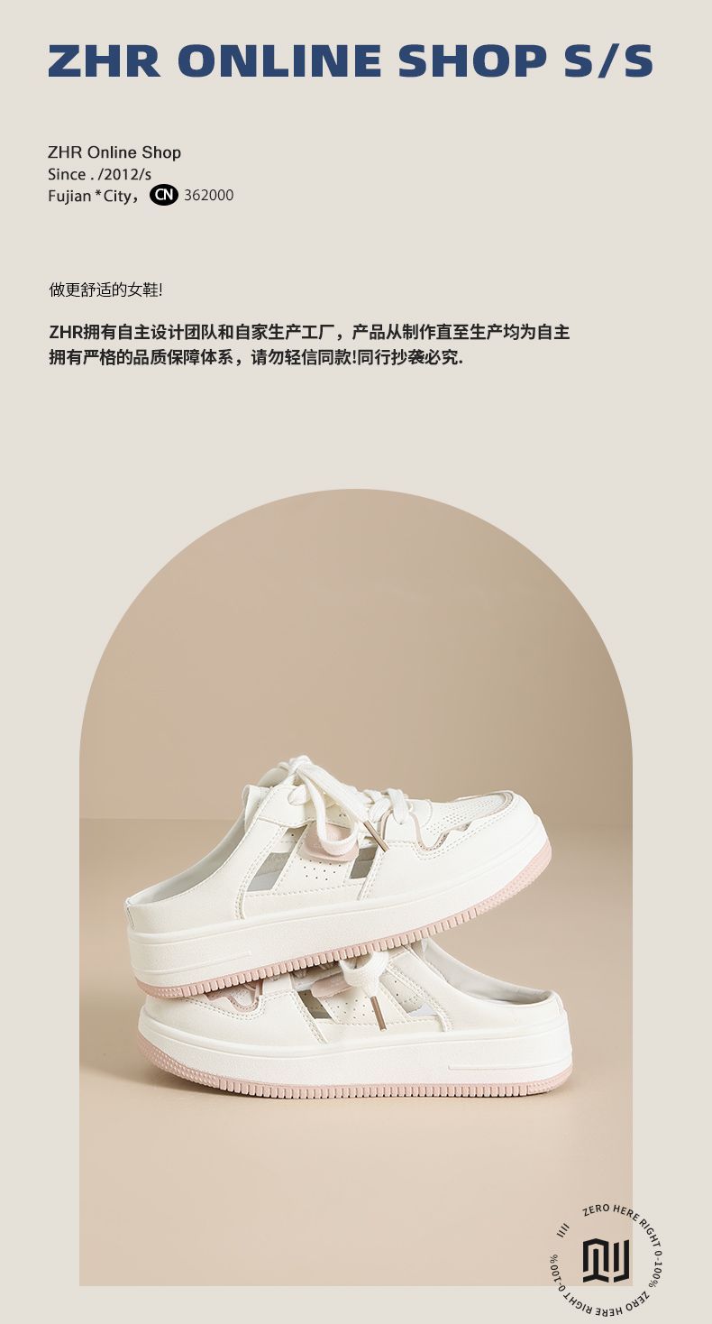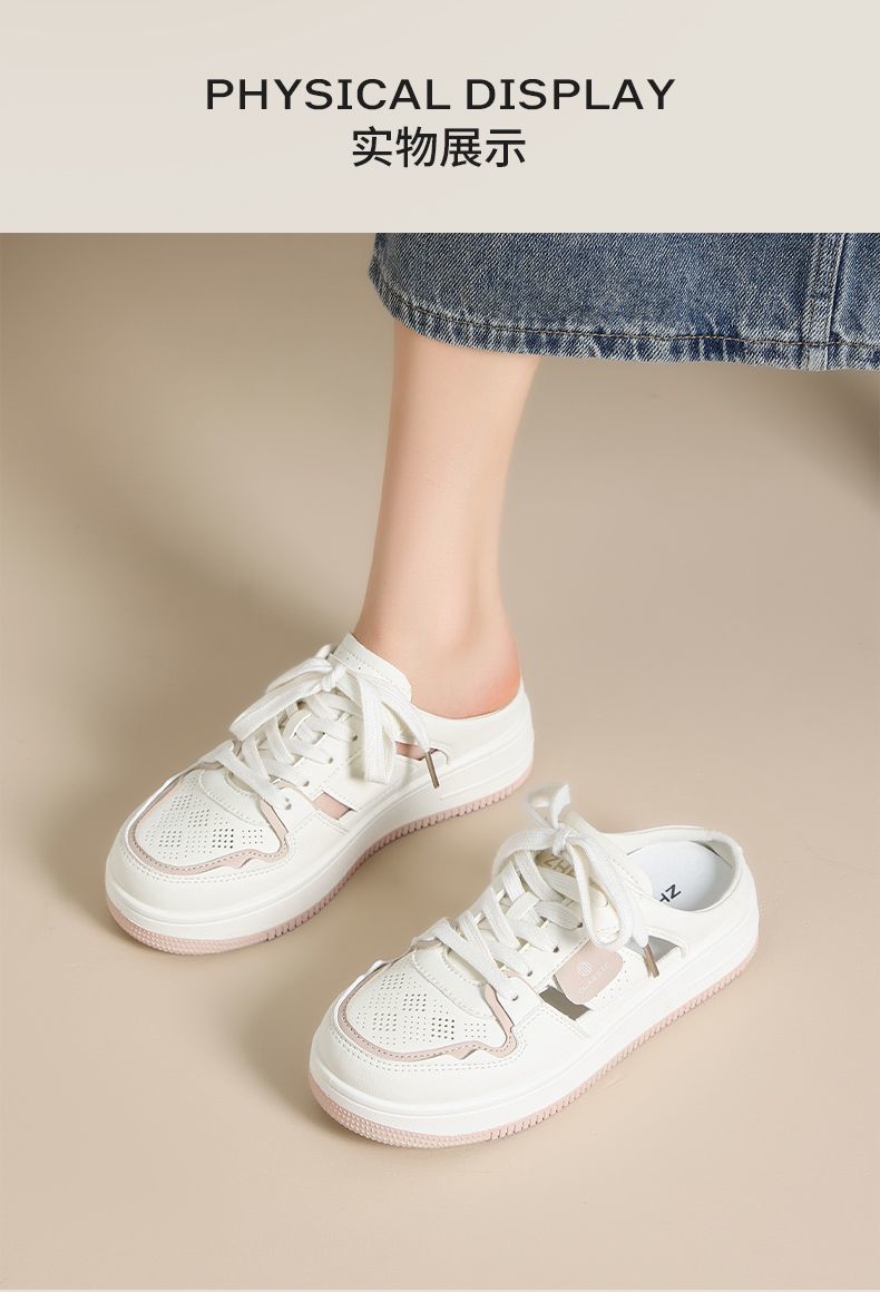 ZHR则则镂空透气包头半拖鞋女夏季小白鞋软底小白鞋半拖鞋女外穿
