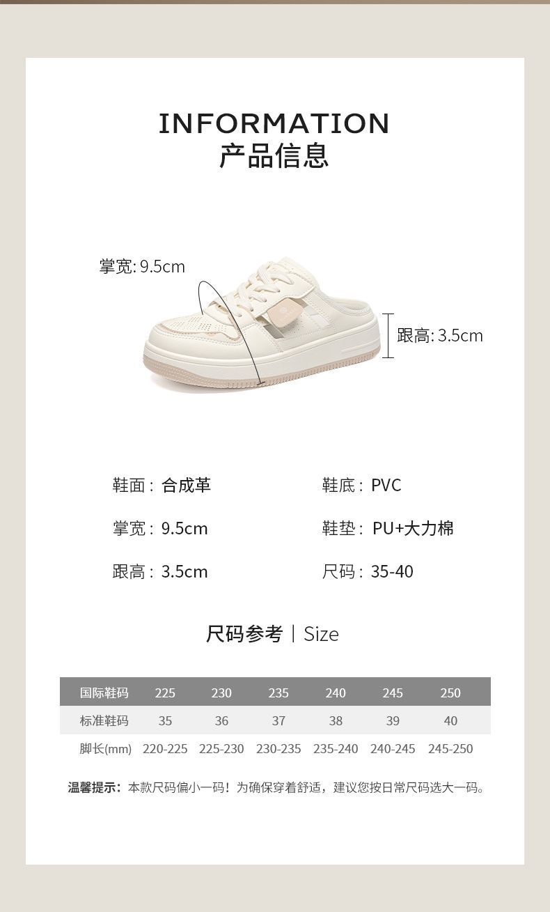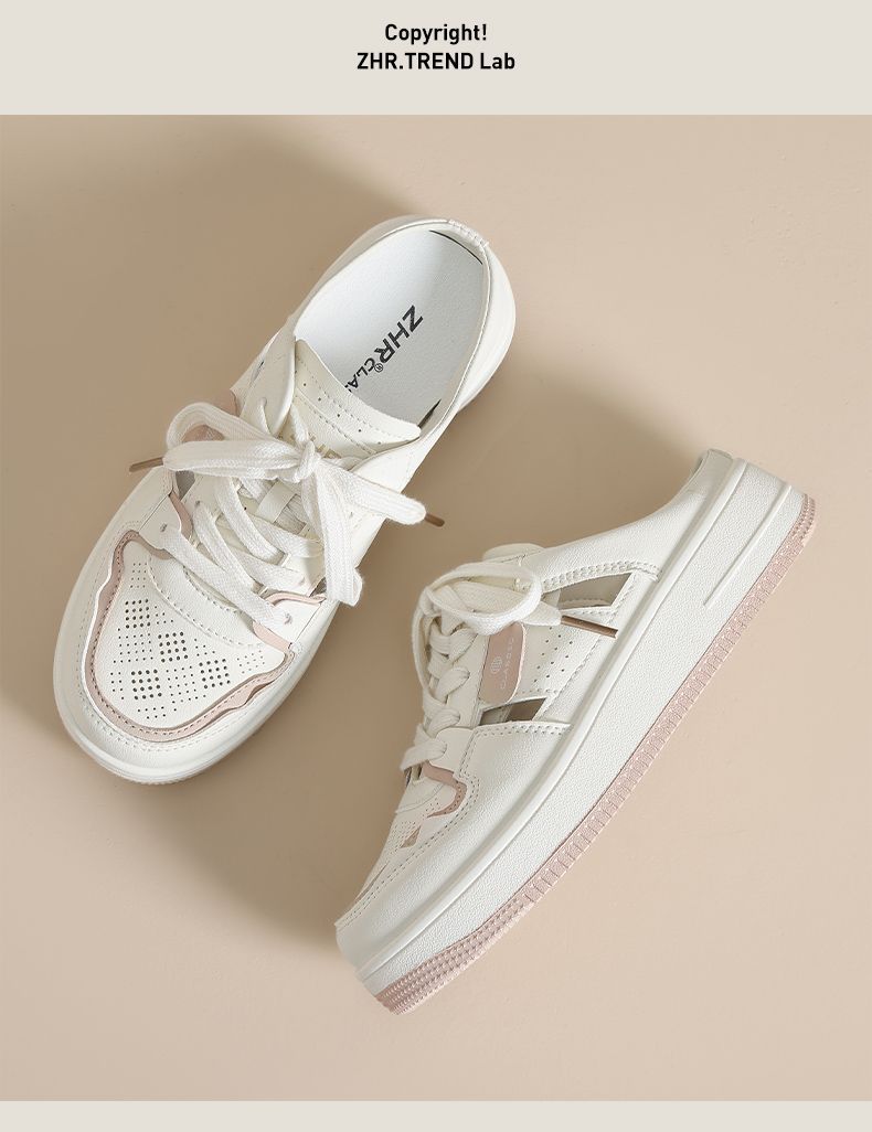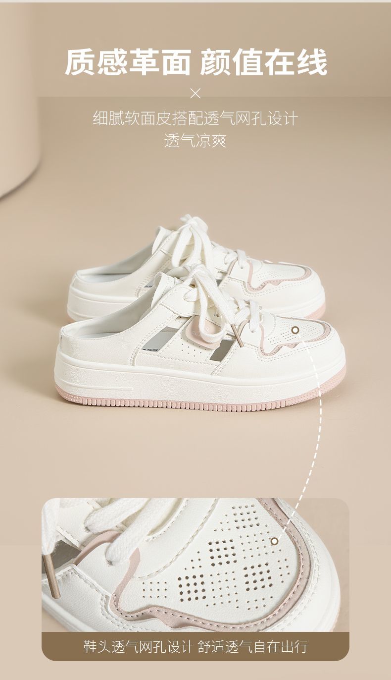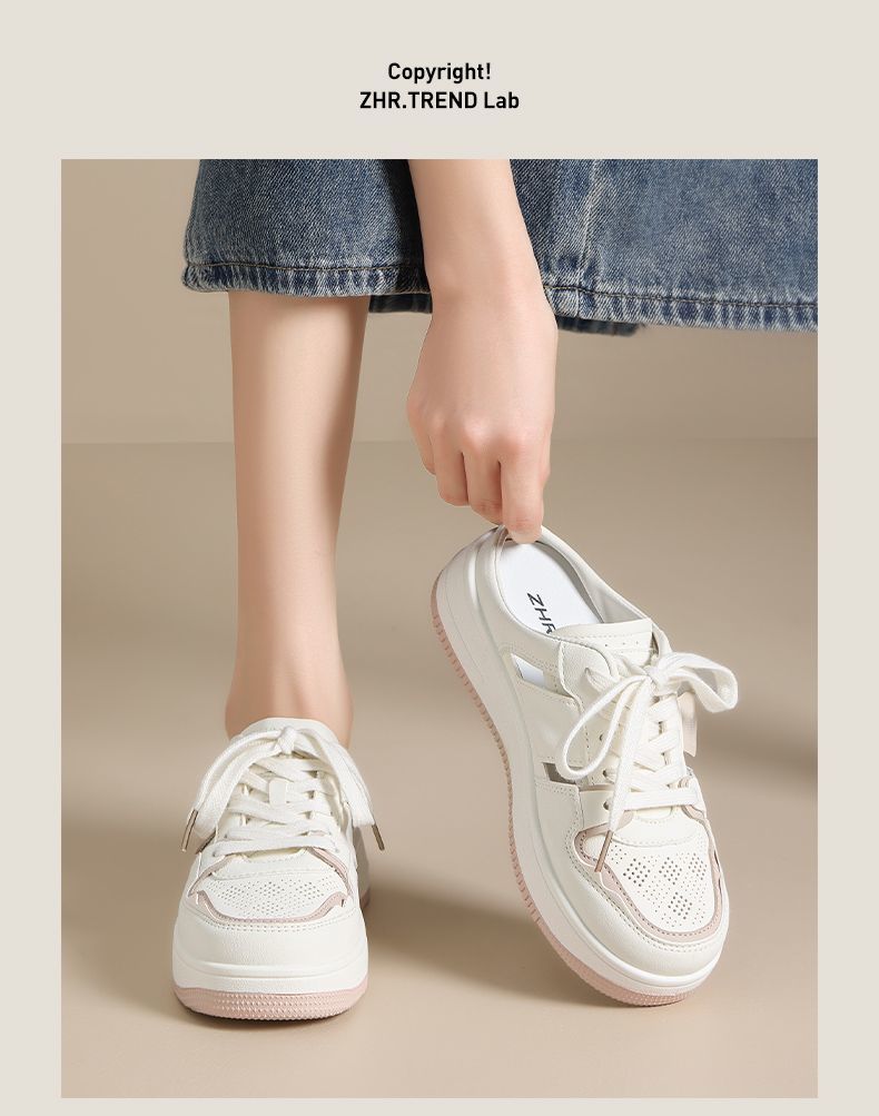ZHR则则镂空透气包头半拖鞋女夏季小白鞋软底小白鞋半拖鞋女外穿