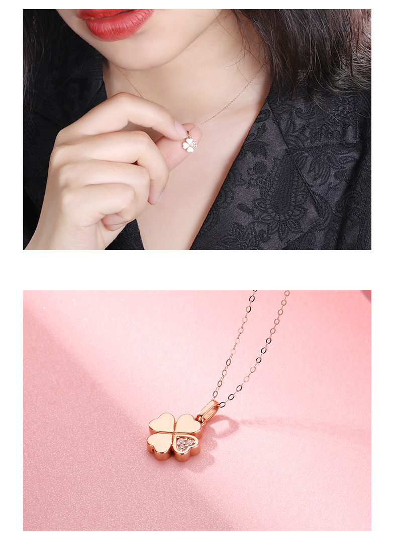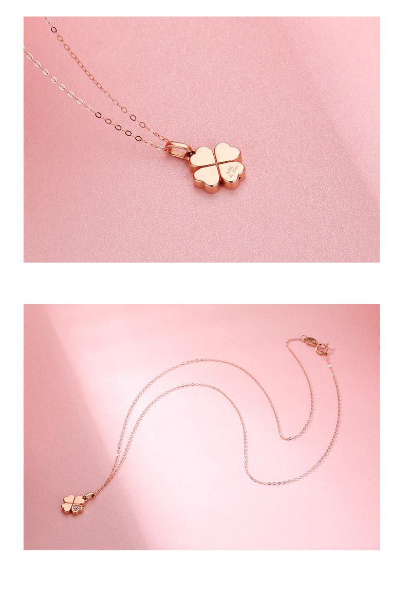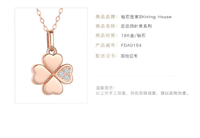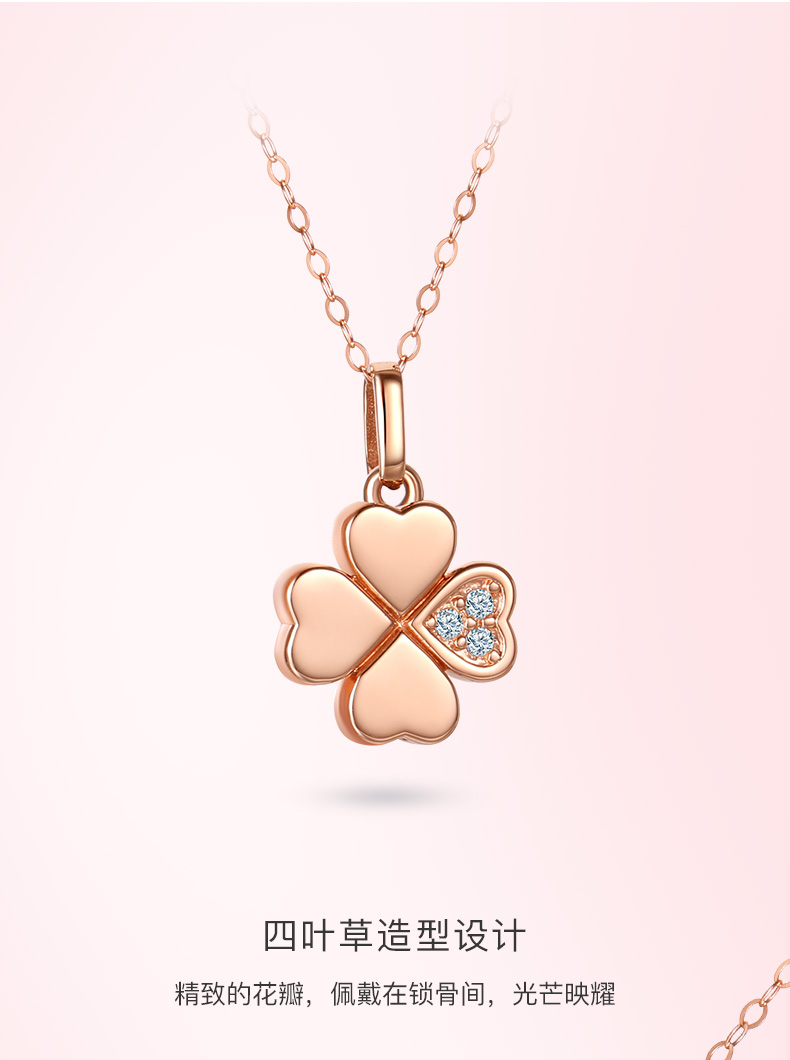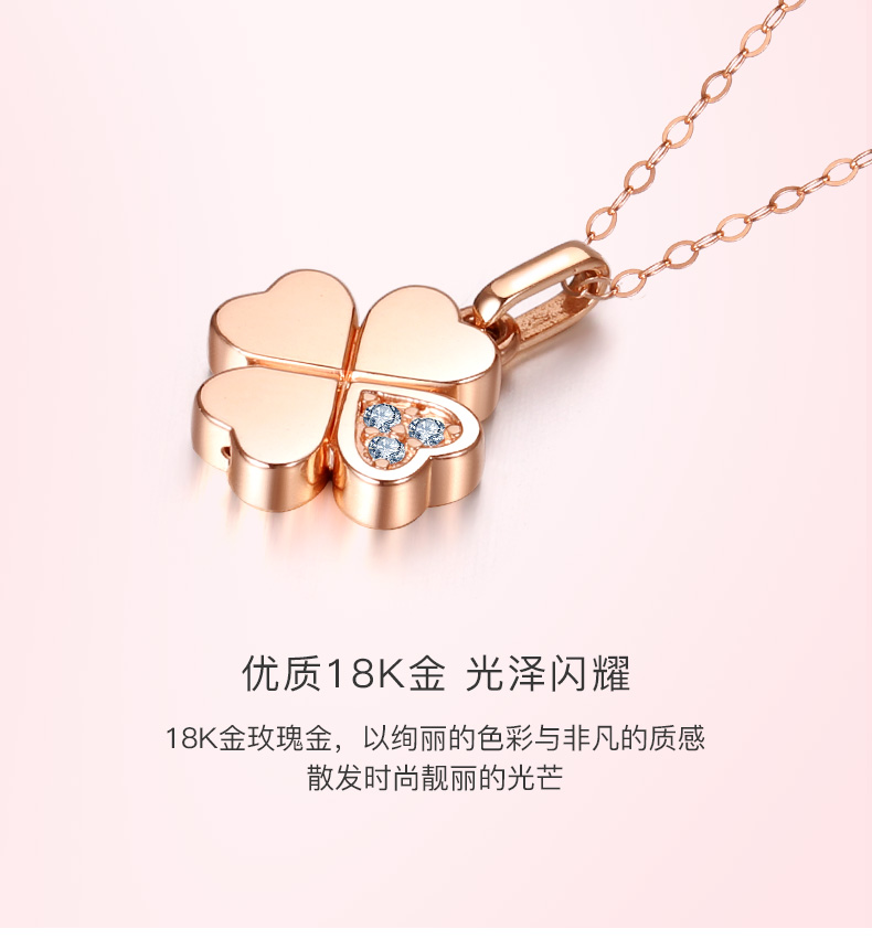 【甄选钻饰】【专享】钻石世家 18K金钻石吊坠 四叶草幸运吊坠爱心造型 送礼送女友礼物