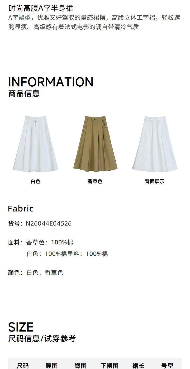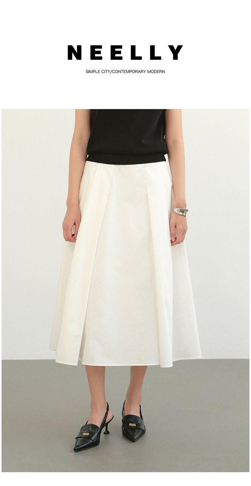 NEELLY纳俪商场同款夏季新款白色高腰气质半身裙女大裙摆A字长裙N26044E04526