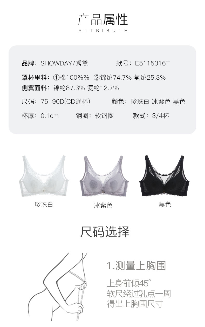 【满2件/99元】【CD通杯单件】【秀黛】月光伊人记忆圈薄杯文胸H5113017D【专柜同款】【如遇缺货自动退款介意勿拍】【如遇缺货自动退款,介意勿拍】