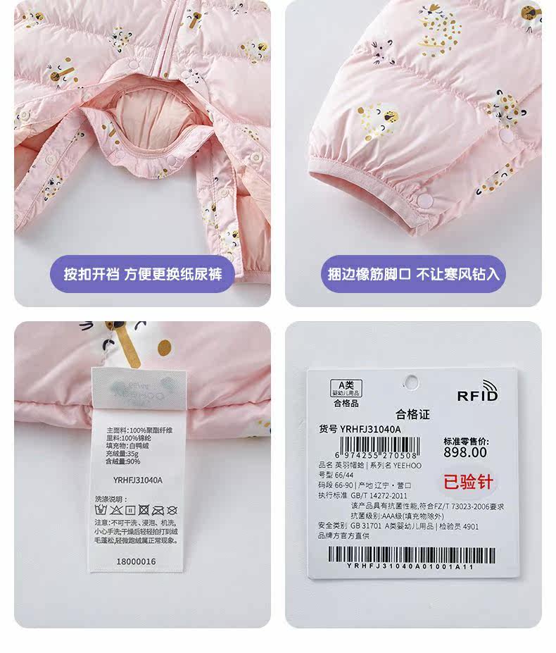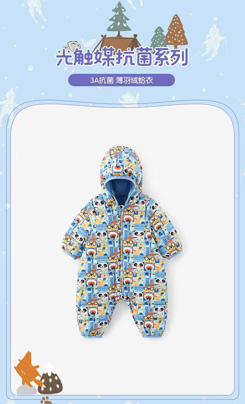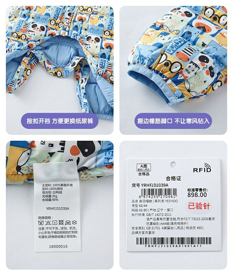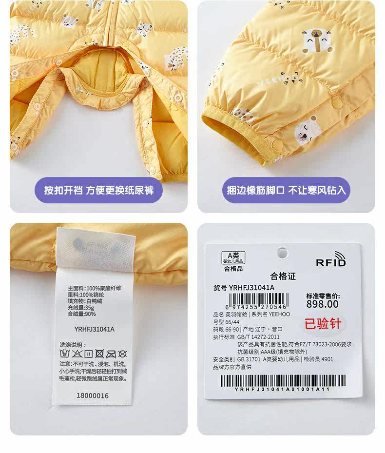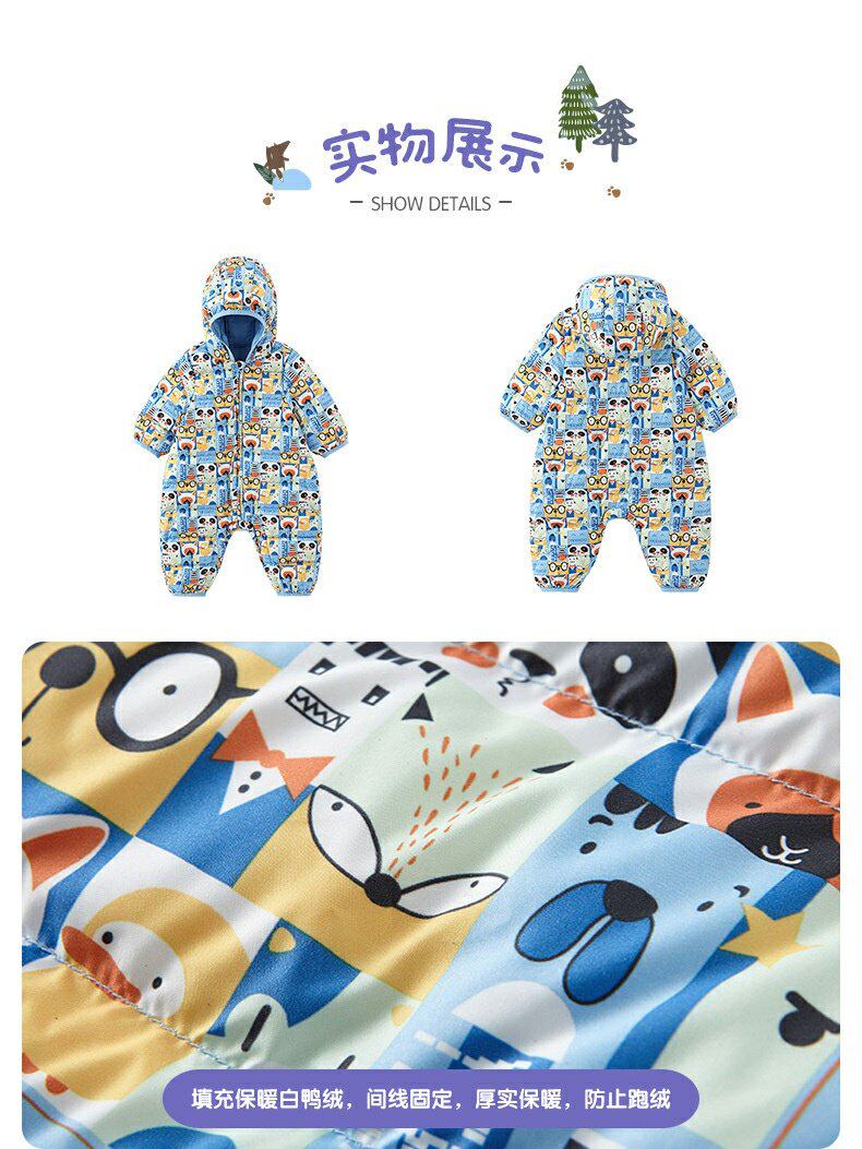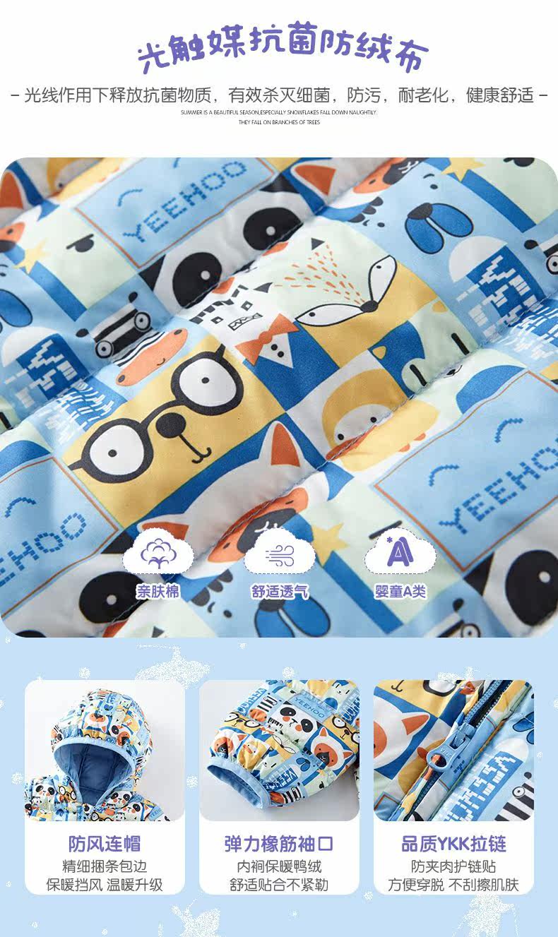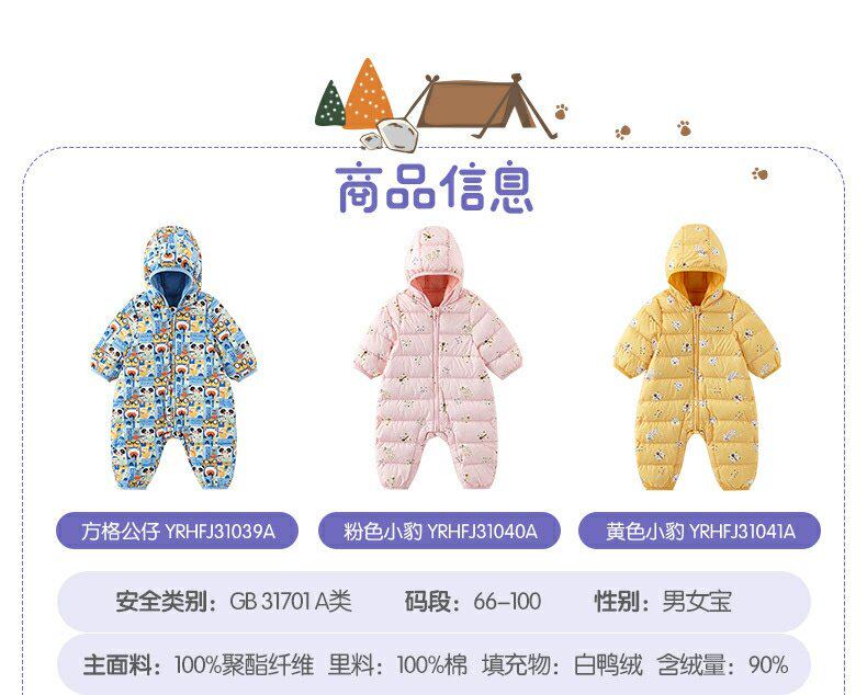 英氏婴儿羽绒哈衣宝宝连帽连体衣抗菌防钻绒保暖外套YRHFJ31039A