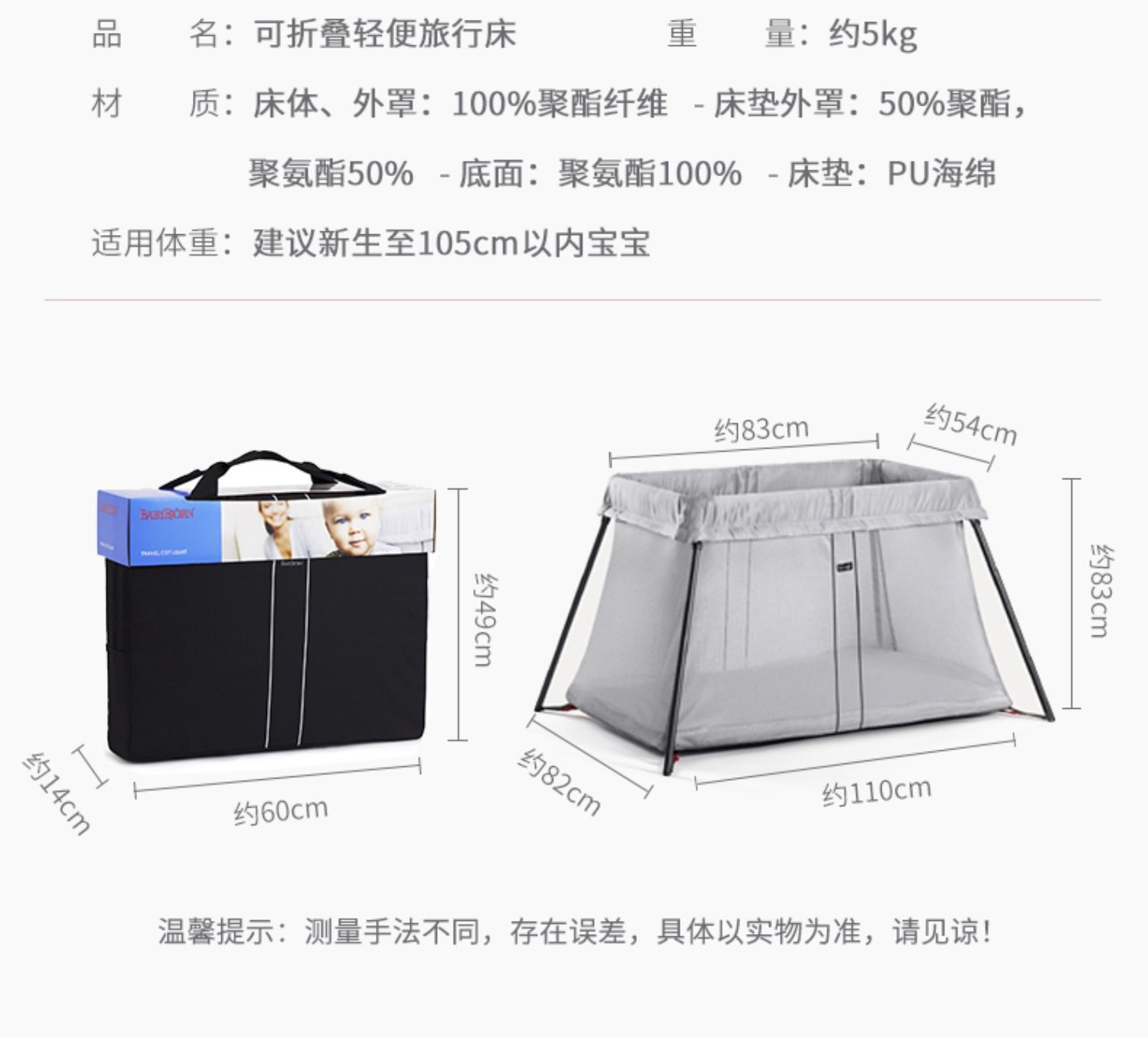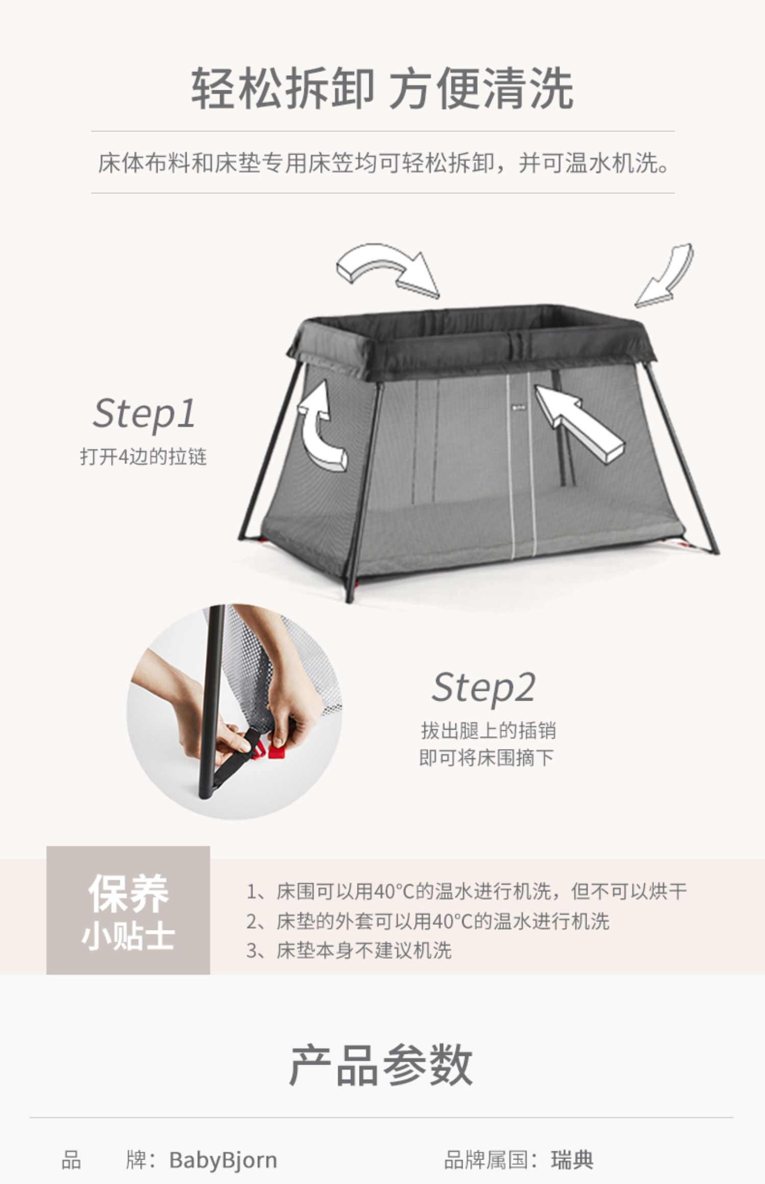 BabyBjorn婴儿床外出游戏床旅行床儿童睡篮婴儿宝宝睡床