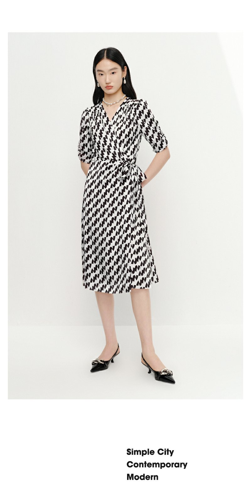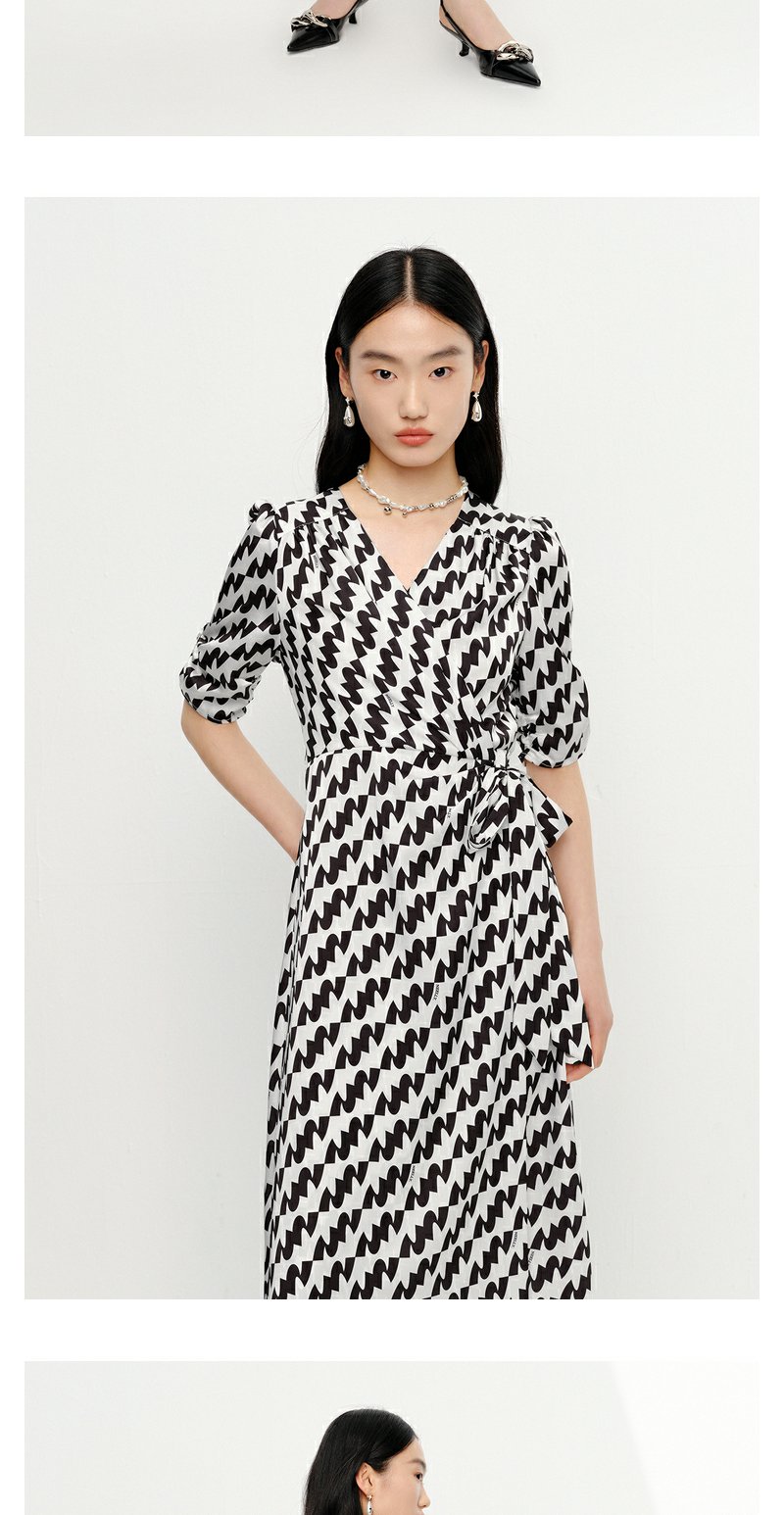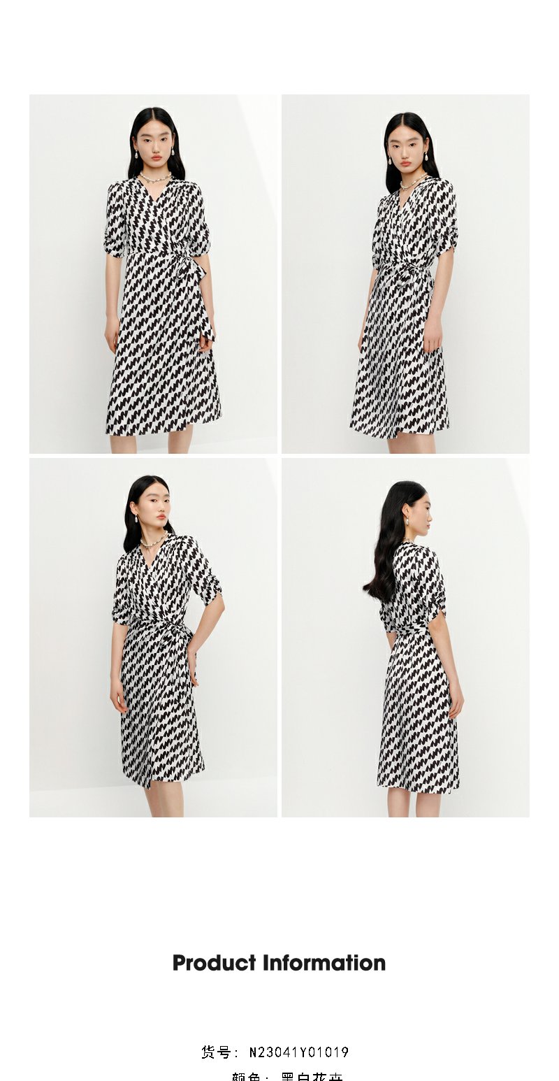 NEELLY纳俪气质连衣裙女中长款短袖系带收腰A字裙夏季新款百搭N23041Y01019