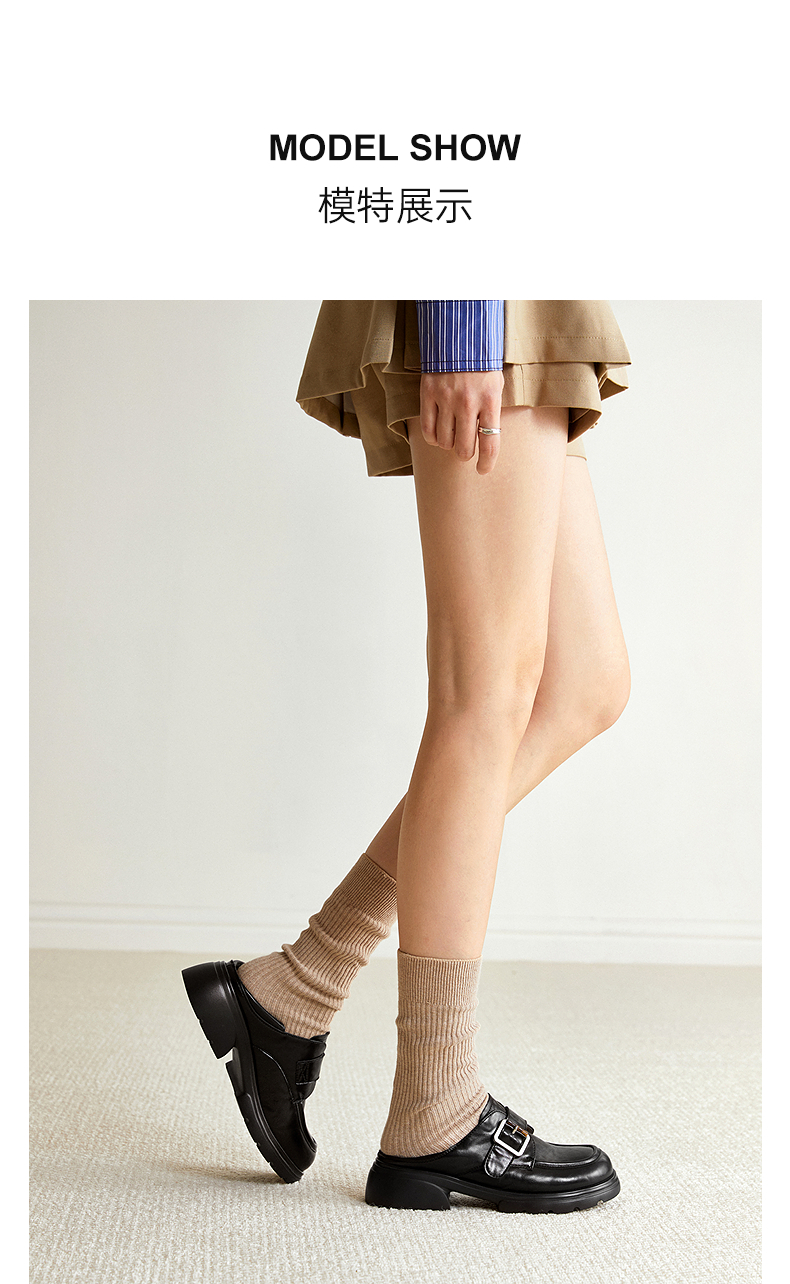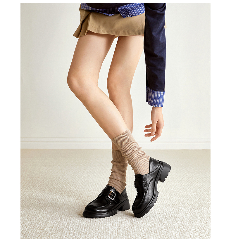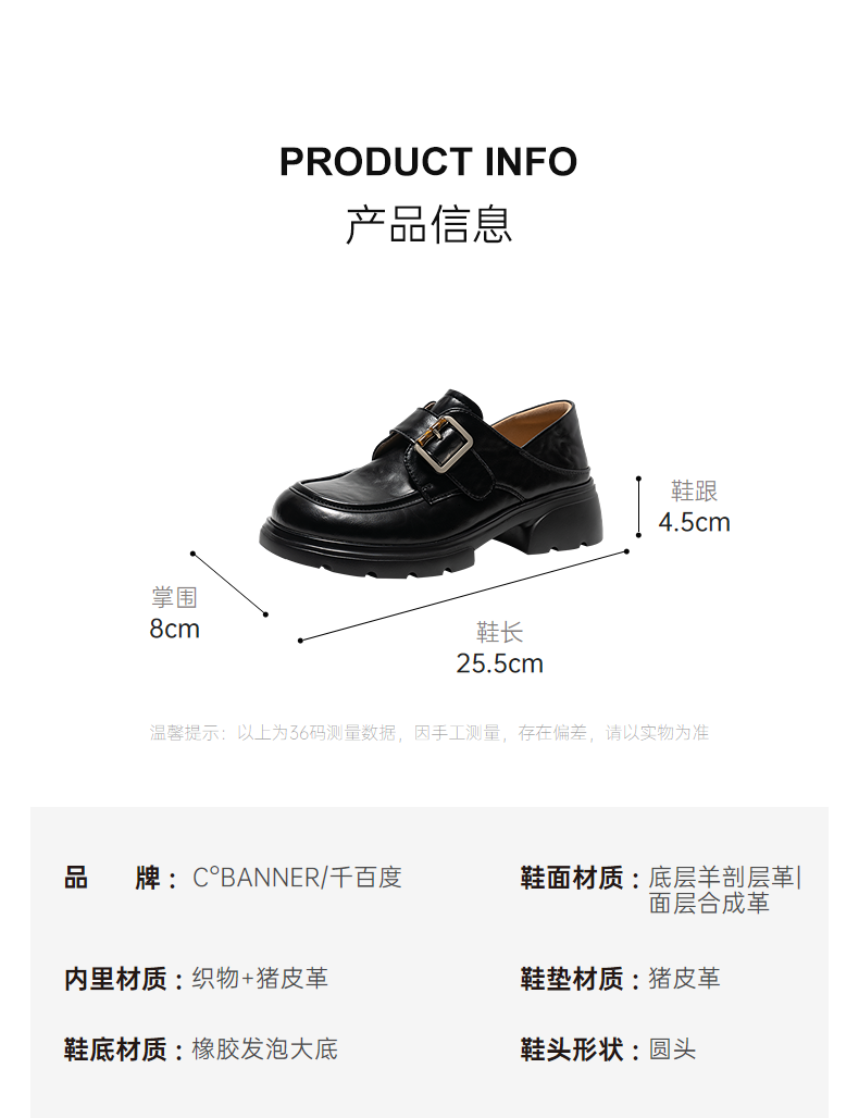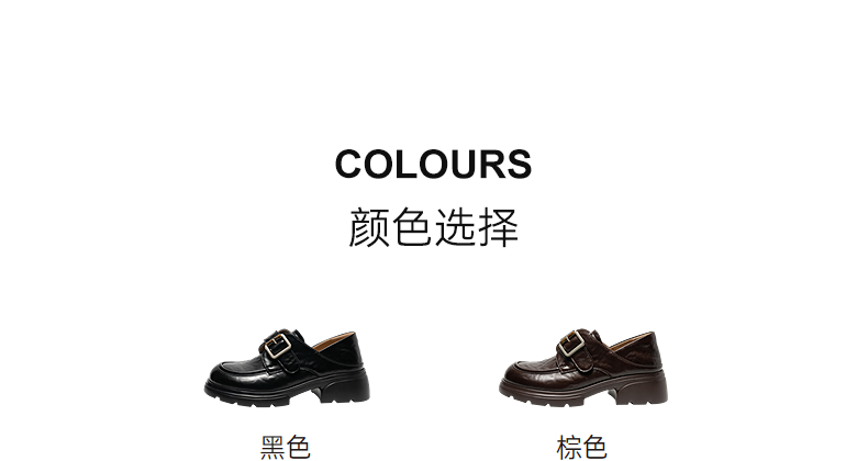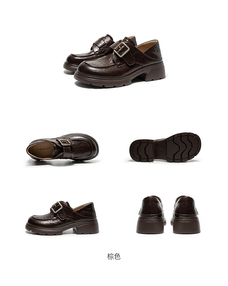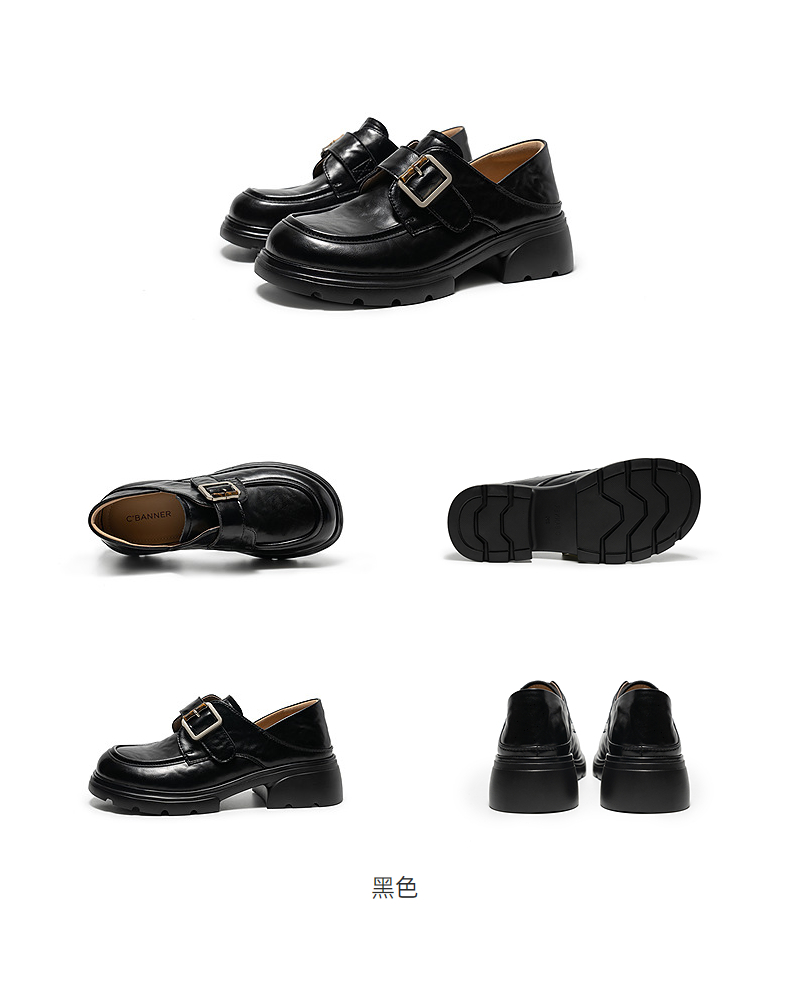 千百度搭扣厚底乐福鞋女2026春季新款增高手抓皮JK小皮鞋深口单鞋A26157802