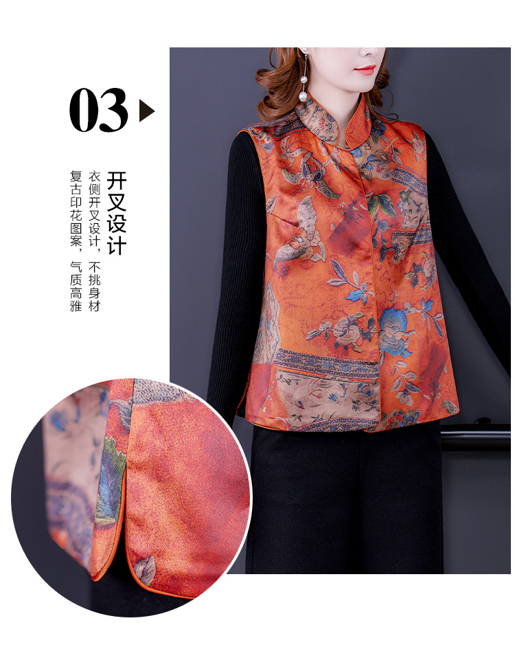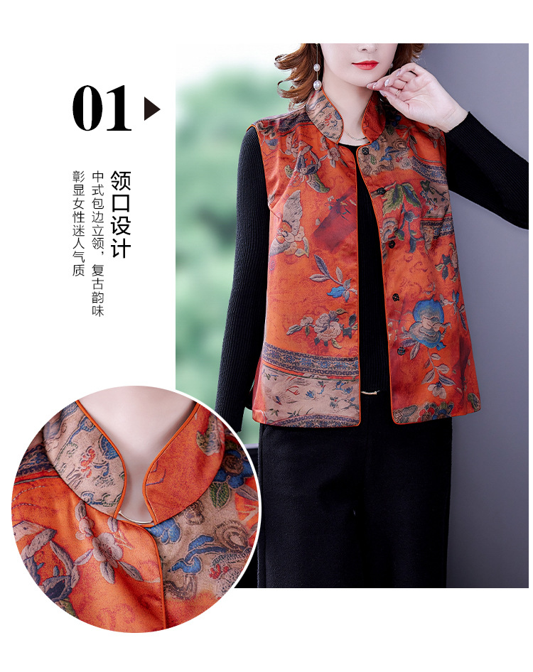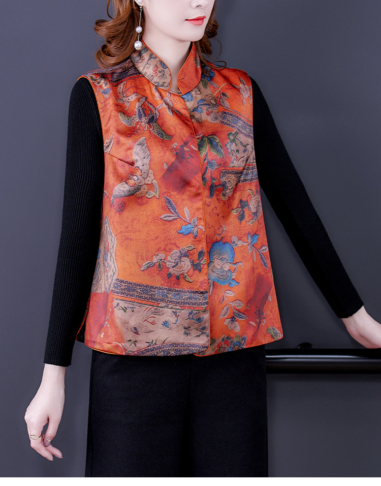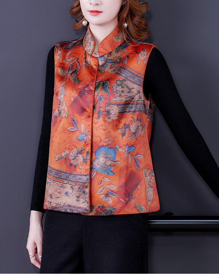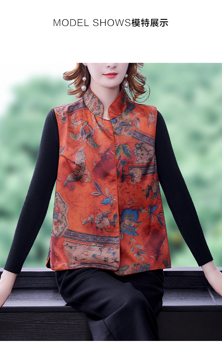 春季中式改良女复古立领唐装马夹女装缎面时尚中国风上衣马甲坎肩AHM-mmj0719