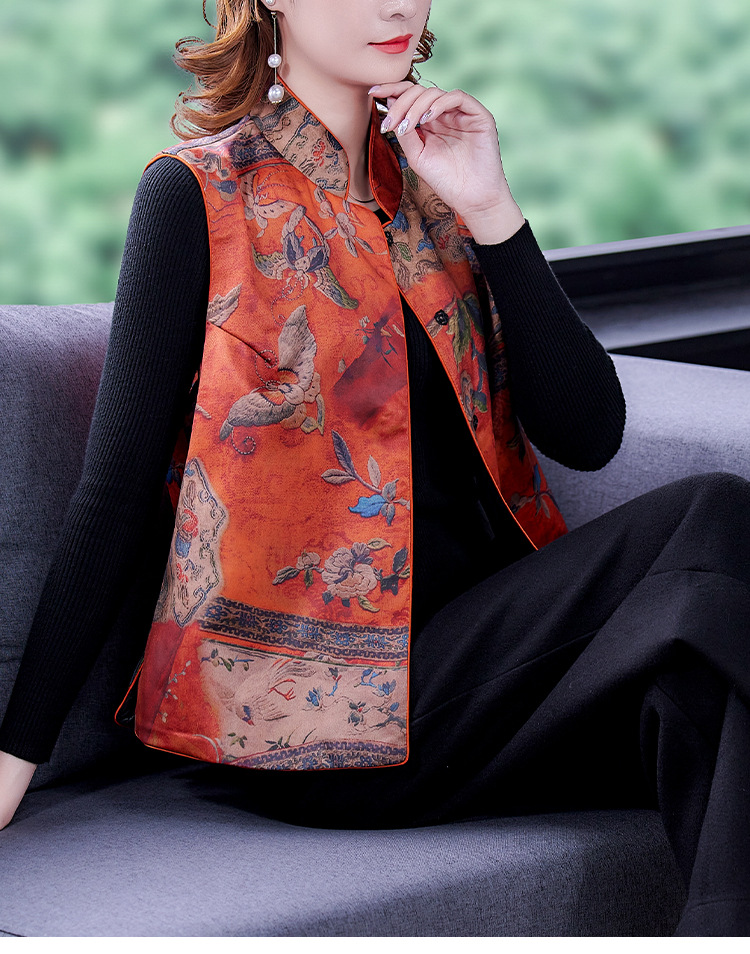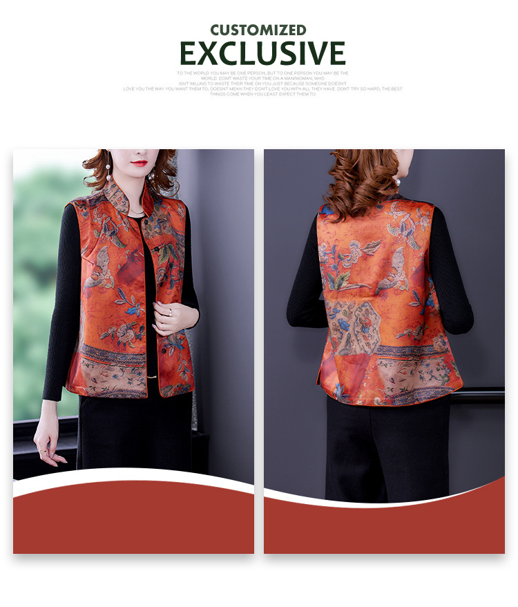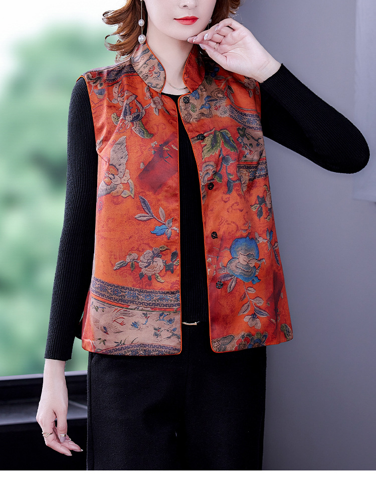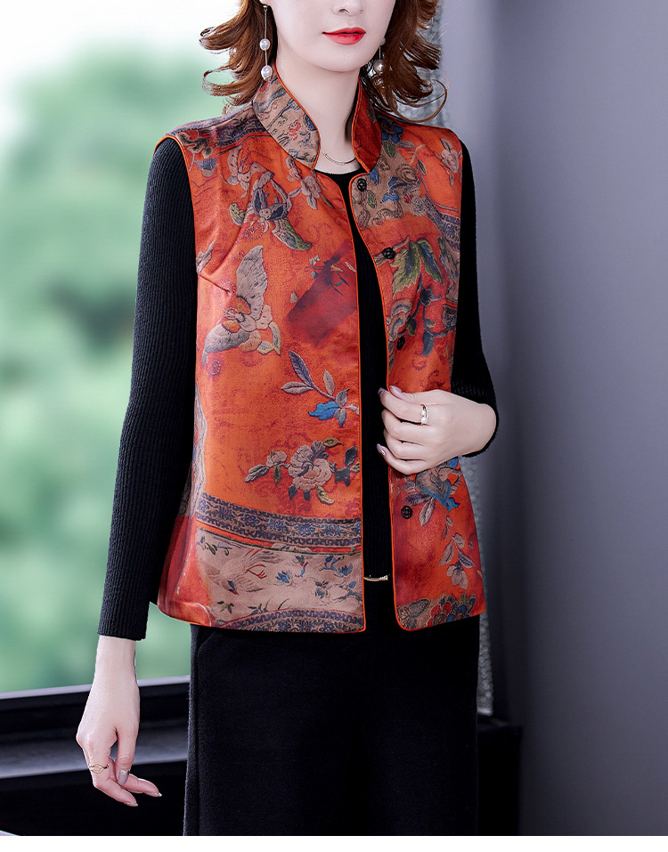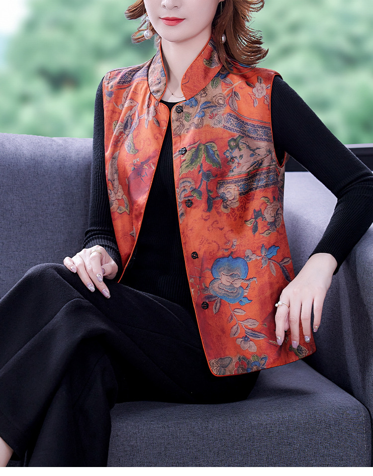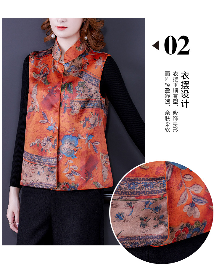 春季中式改良女复古立领唐装马夹女装缎面时尚中国风上衣马甲坎肩AHM-mmj0719