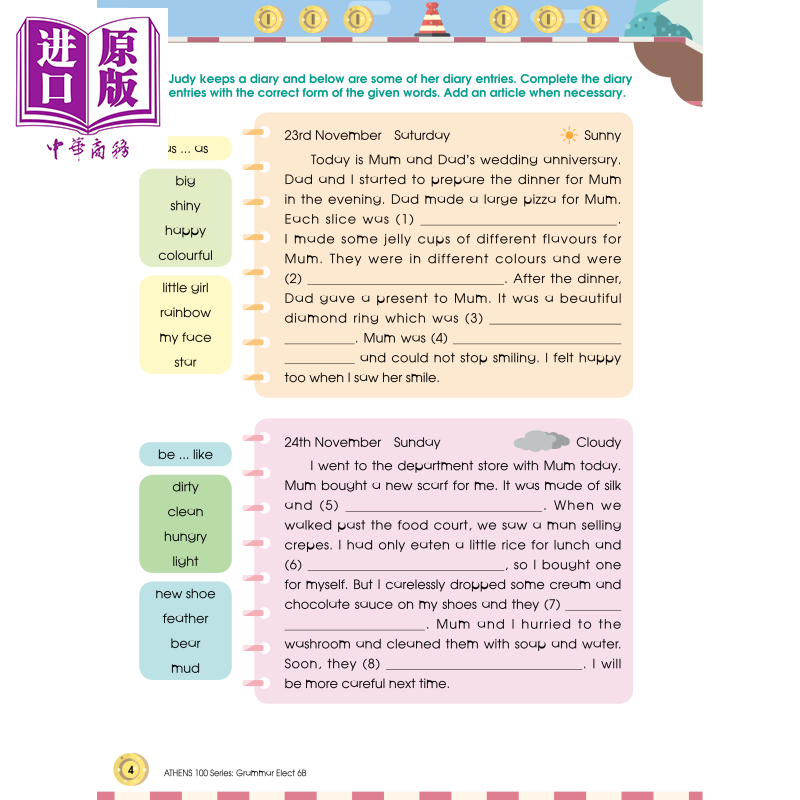 ATHENS 100 Series: Grammar Elect is a 12-book series written for students to learn and revise the grammar items covered in the Primary English Curriculum and major textbooks used in Hong Kong.
