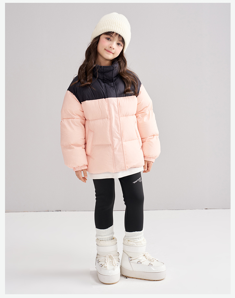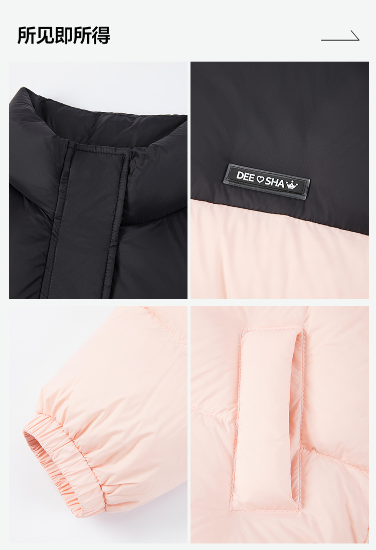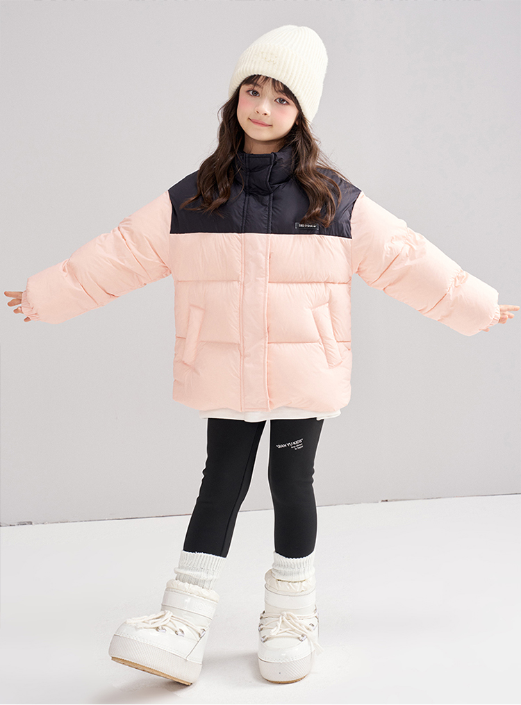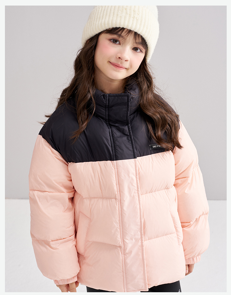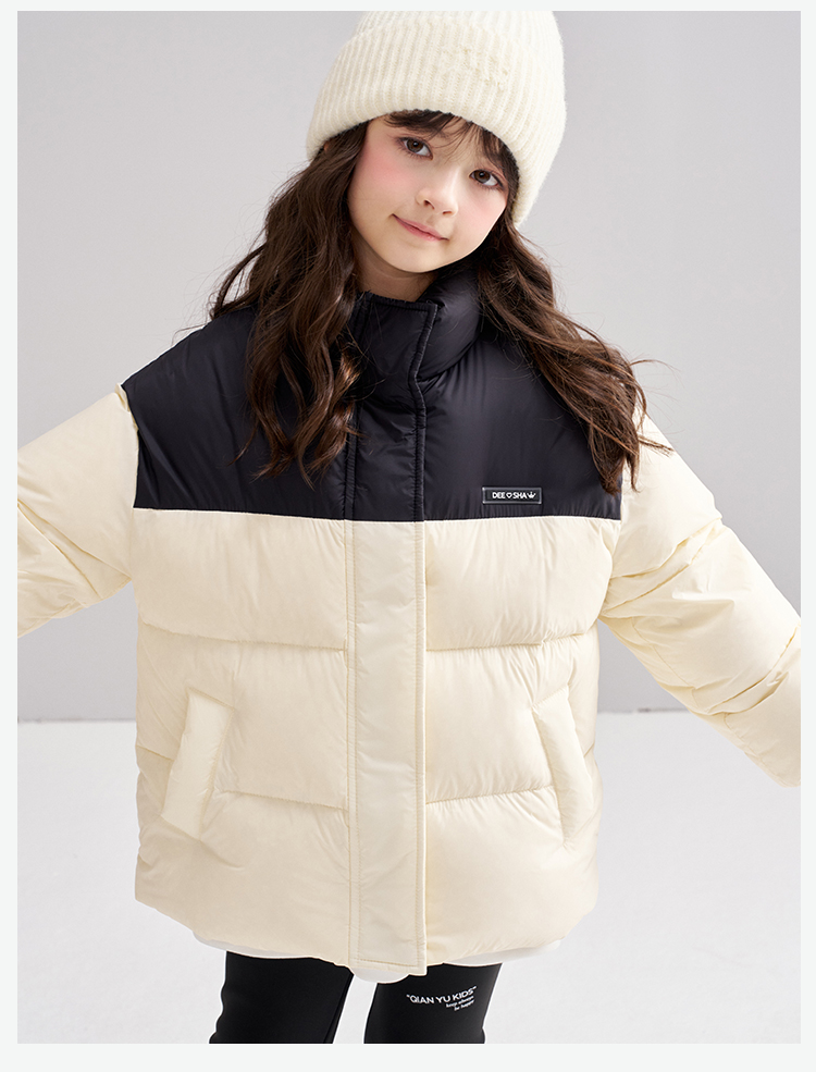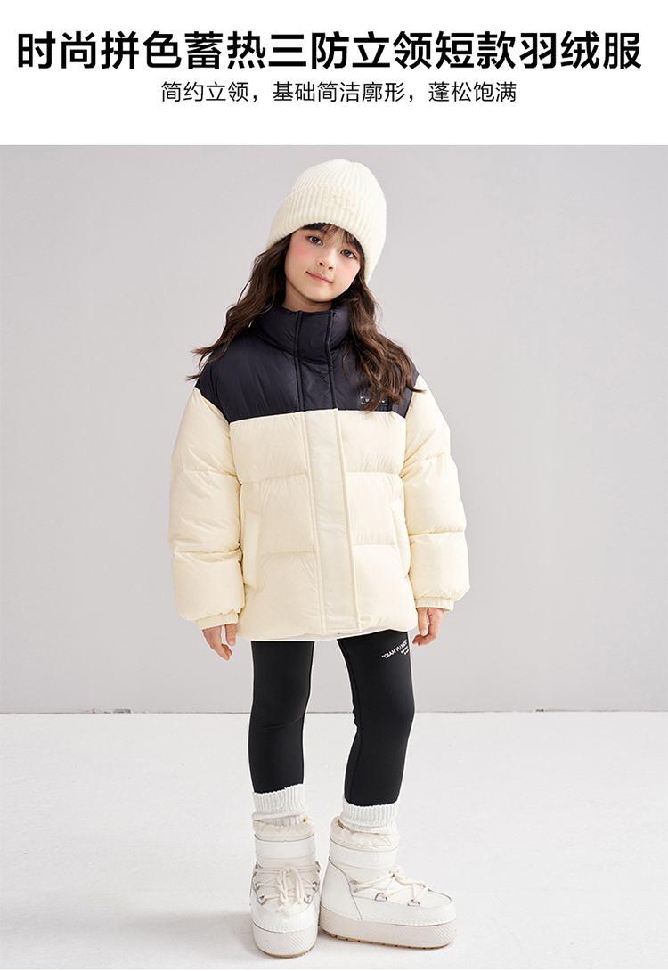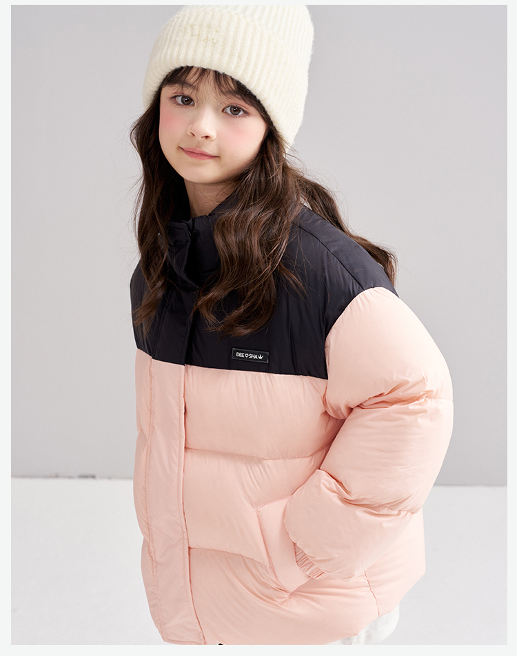 笛莎Deesha 2025冬季女童时尚拼色蓄热三防立领短款羽绒服