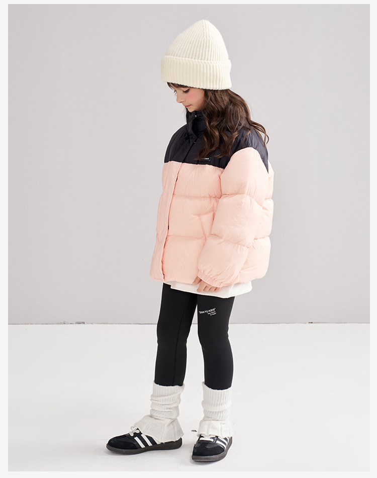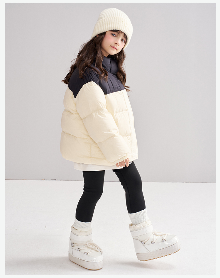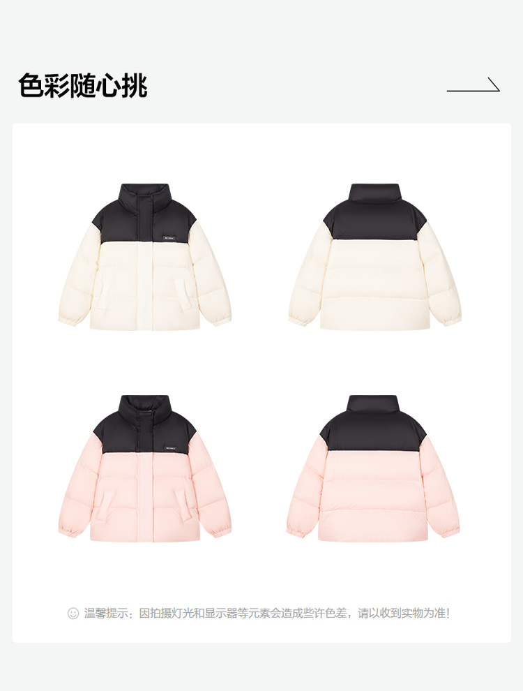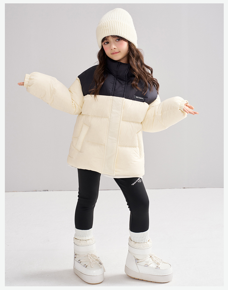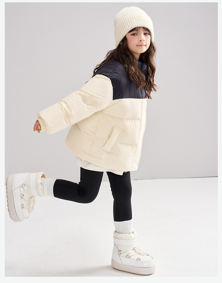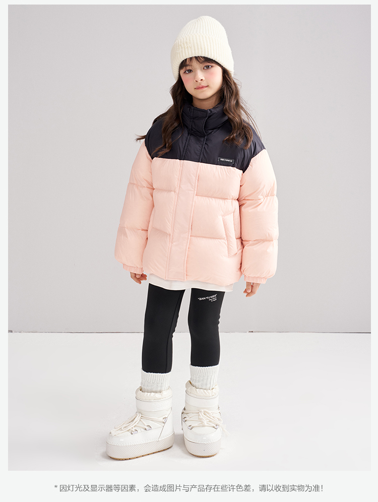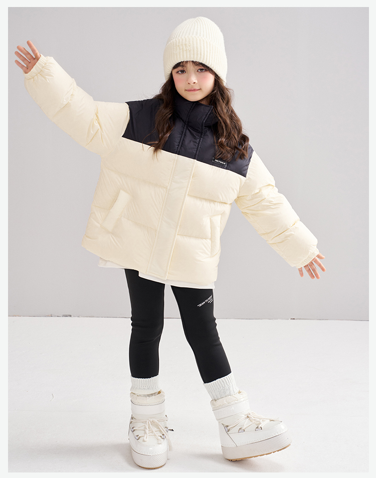 笛莎Deesha 2025冬季女童时尚拼色蓄热三防立领短款羽绒服