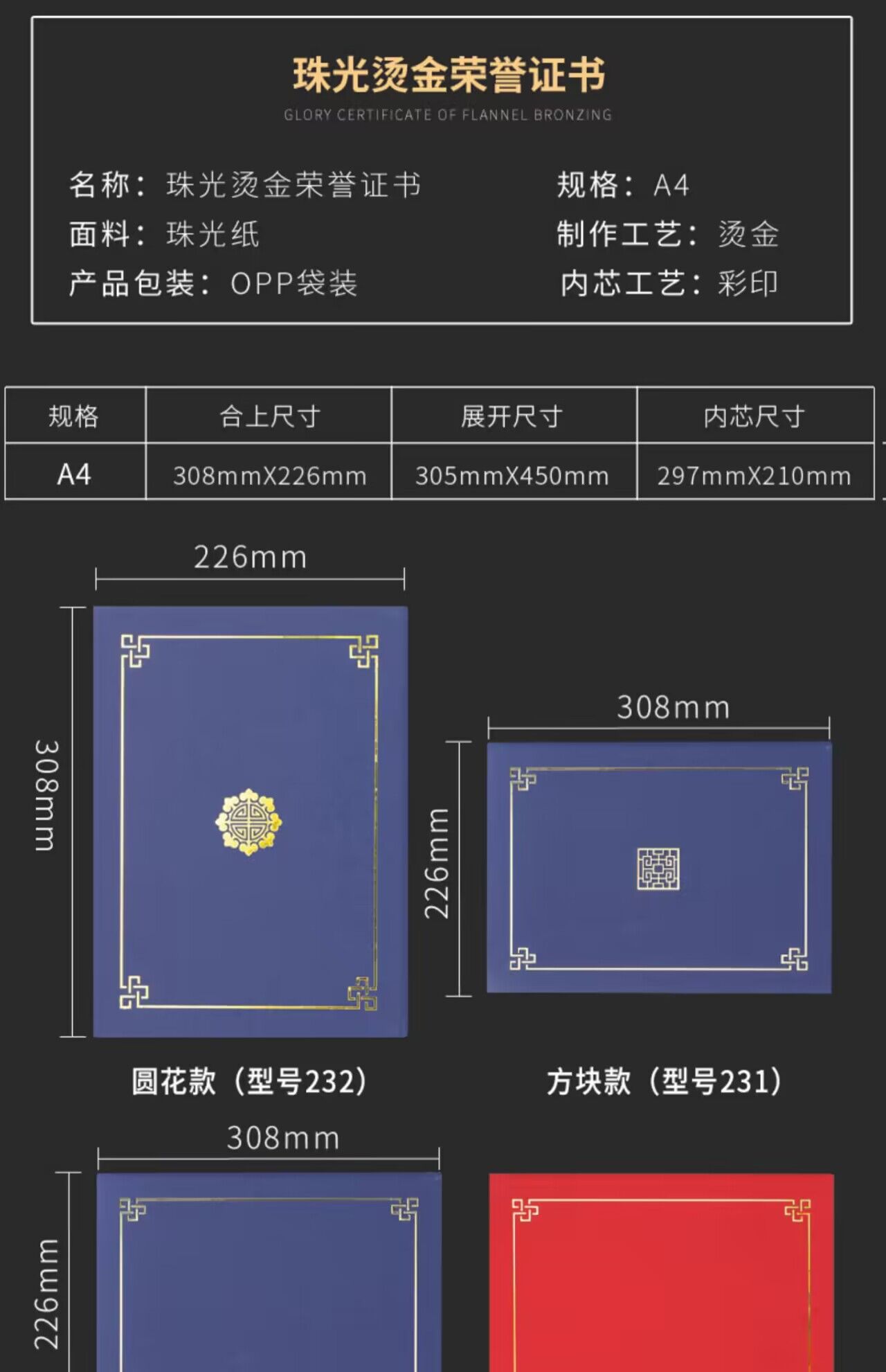 A4珠光磨砂硬本荣誉证书外壳奖状定制烫金封面聘书封皮高档荣誉证书书壳定制