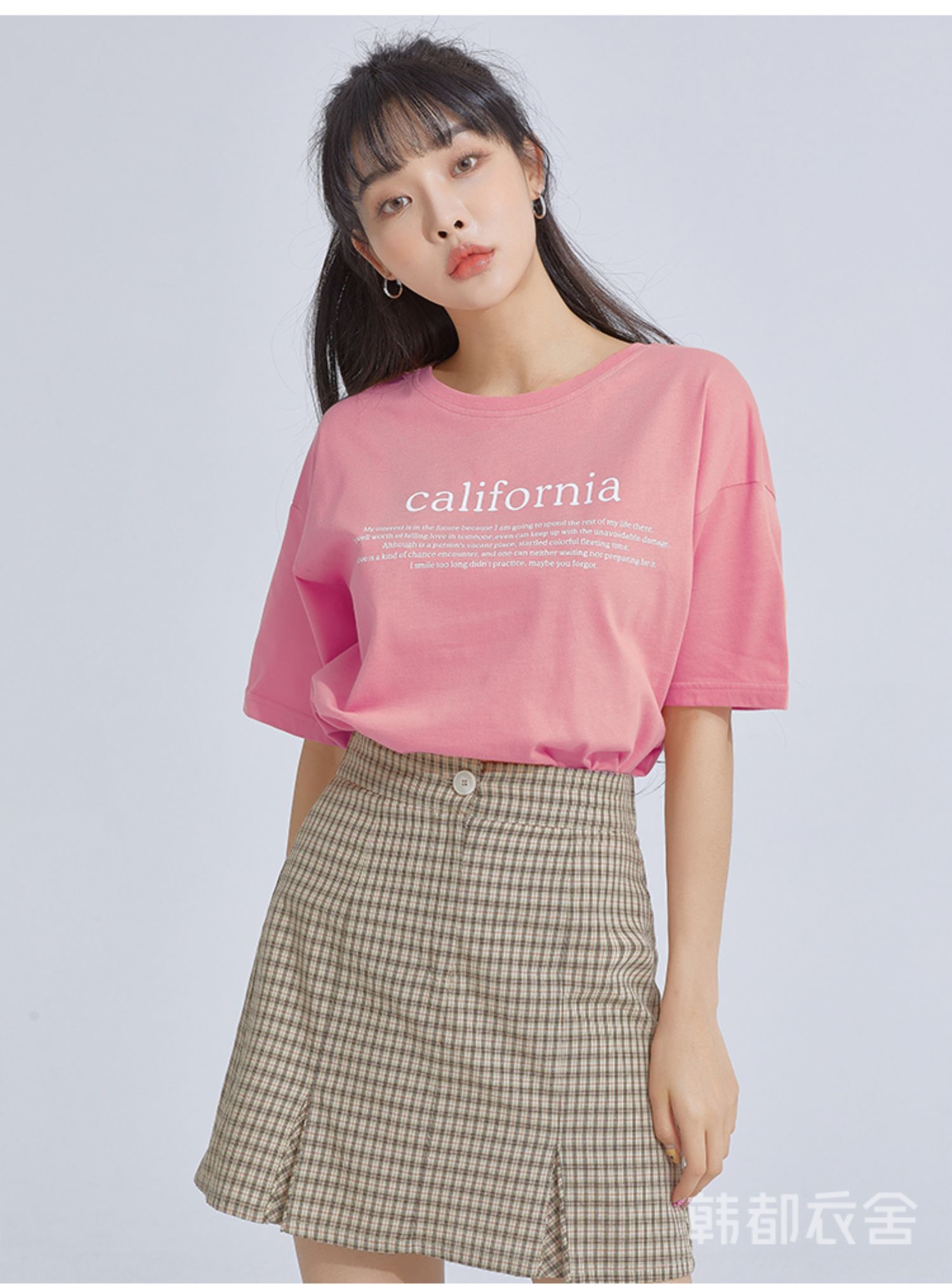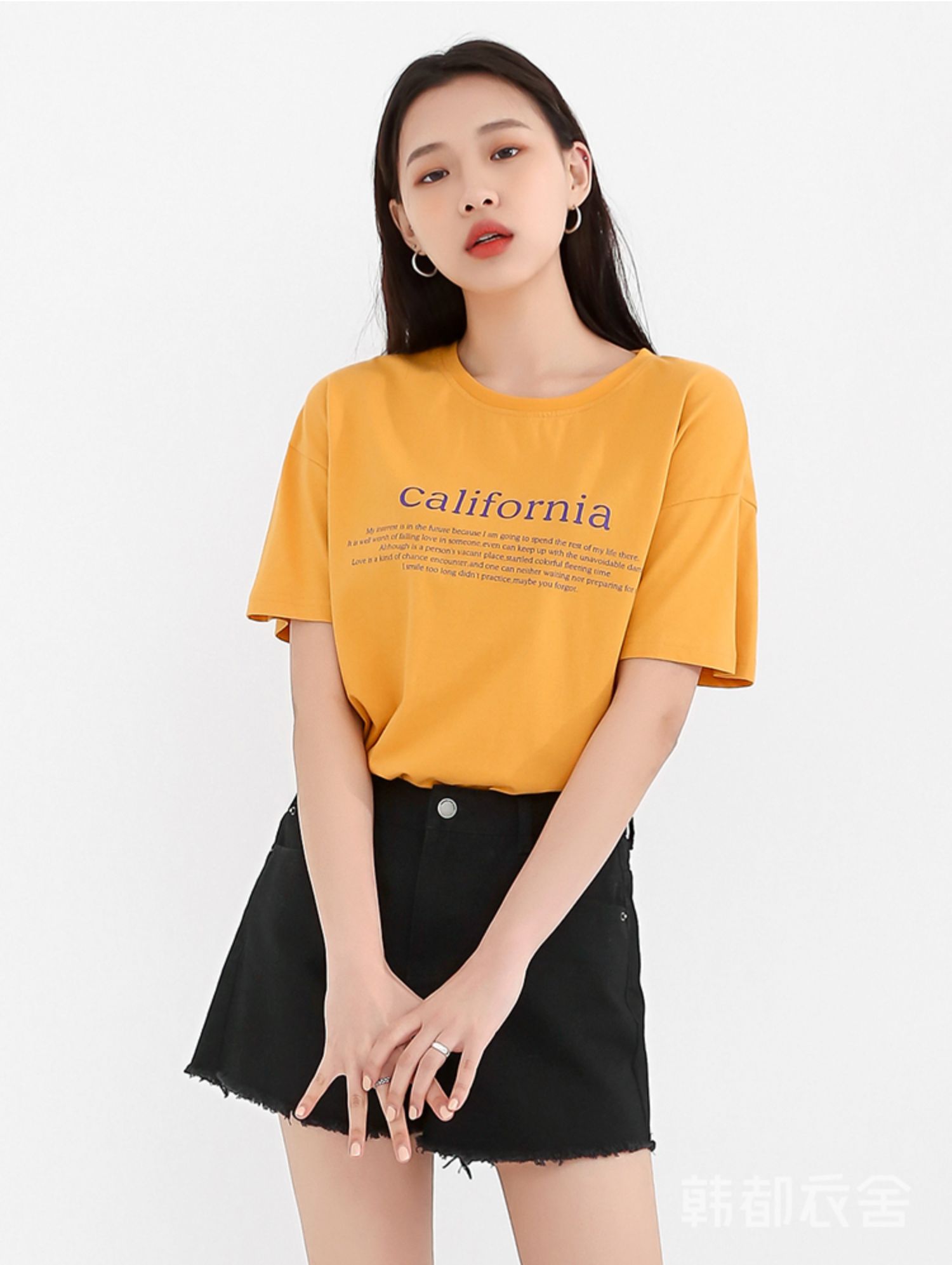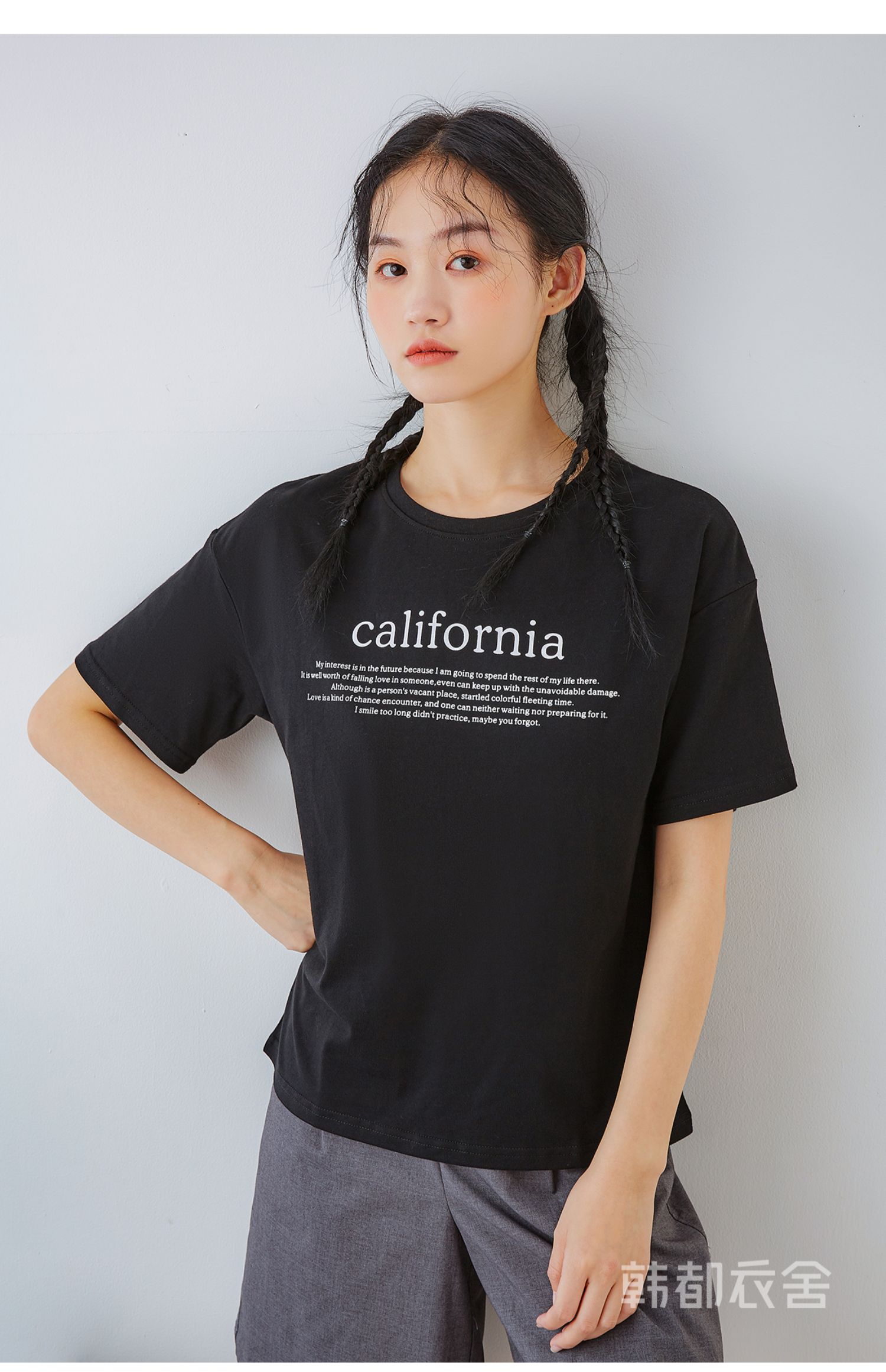 韩都衣舍短袖T恤女夏2021新款新疆棉宽松显瘦大码打底上衣女ins潮