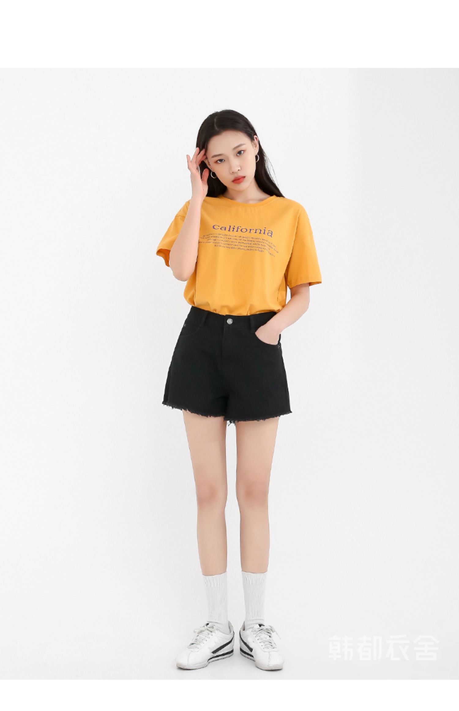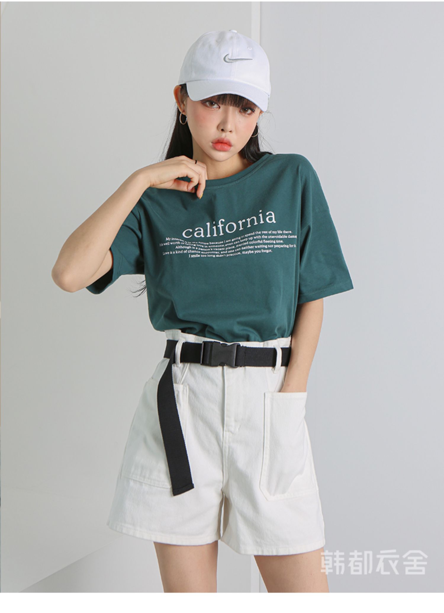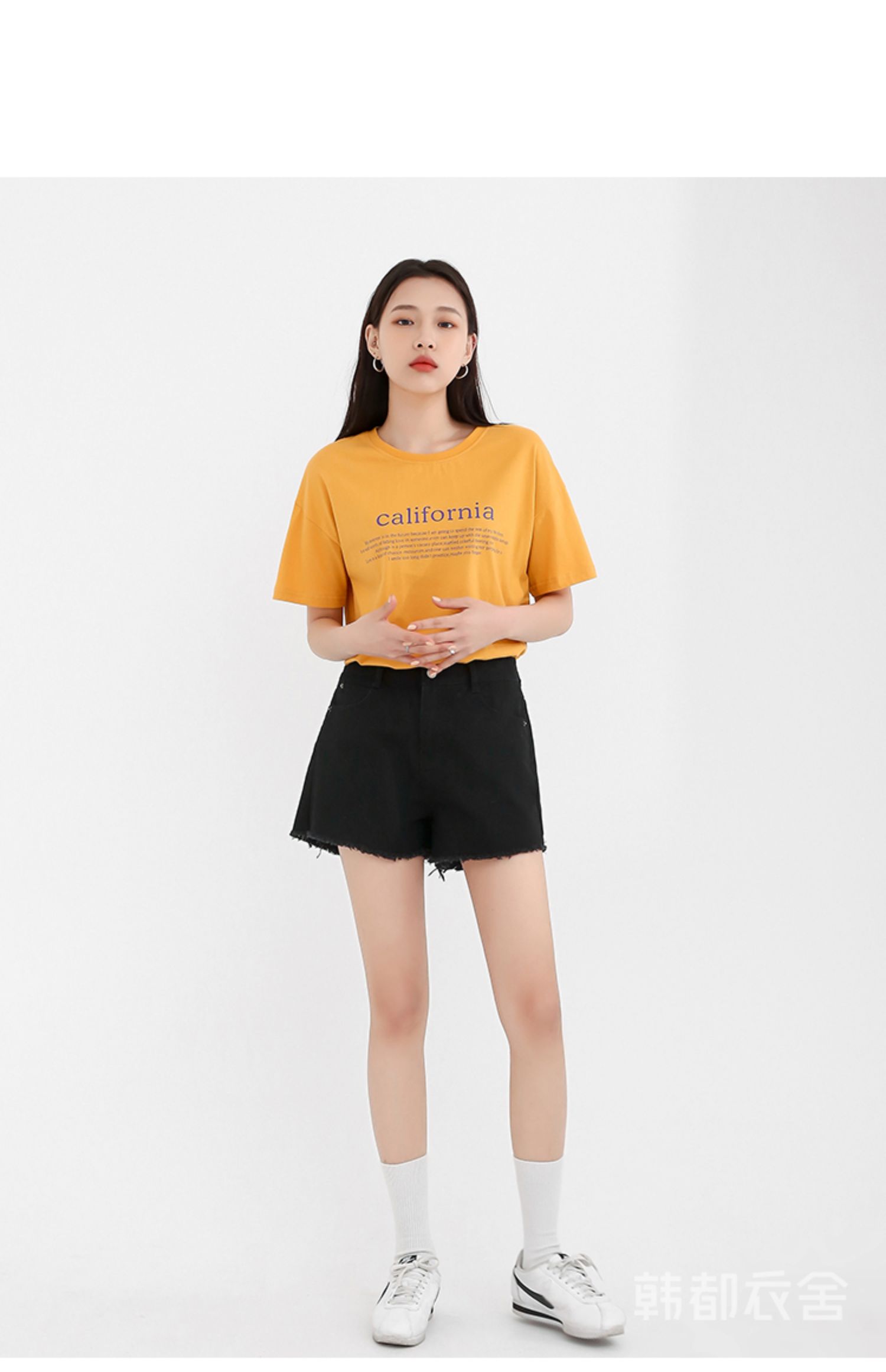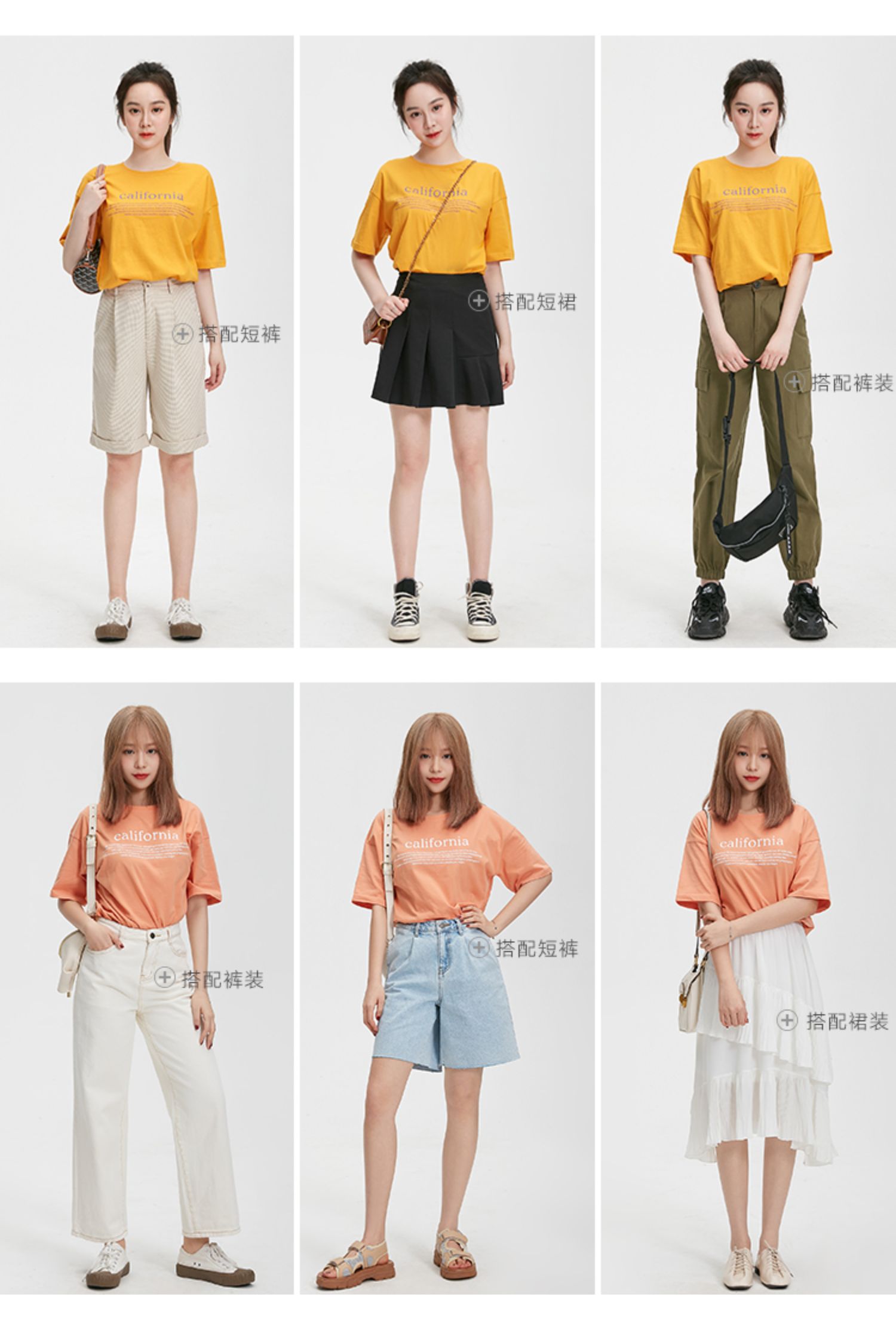 韩都衣舍短袖T恤女夏2021新款新疆棉宽松显瘦大码打底上衣女ins潮