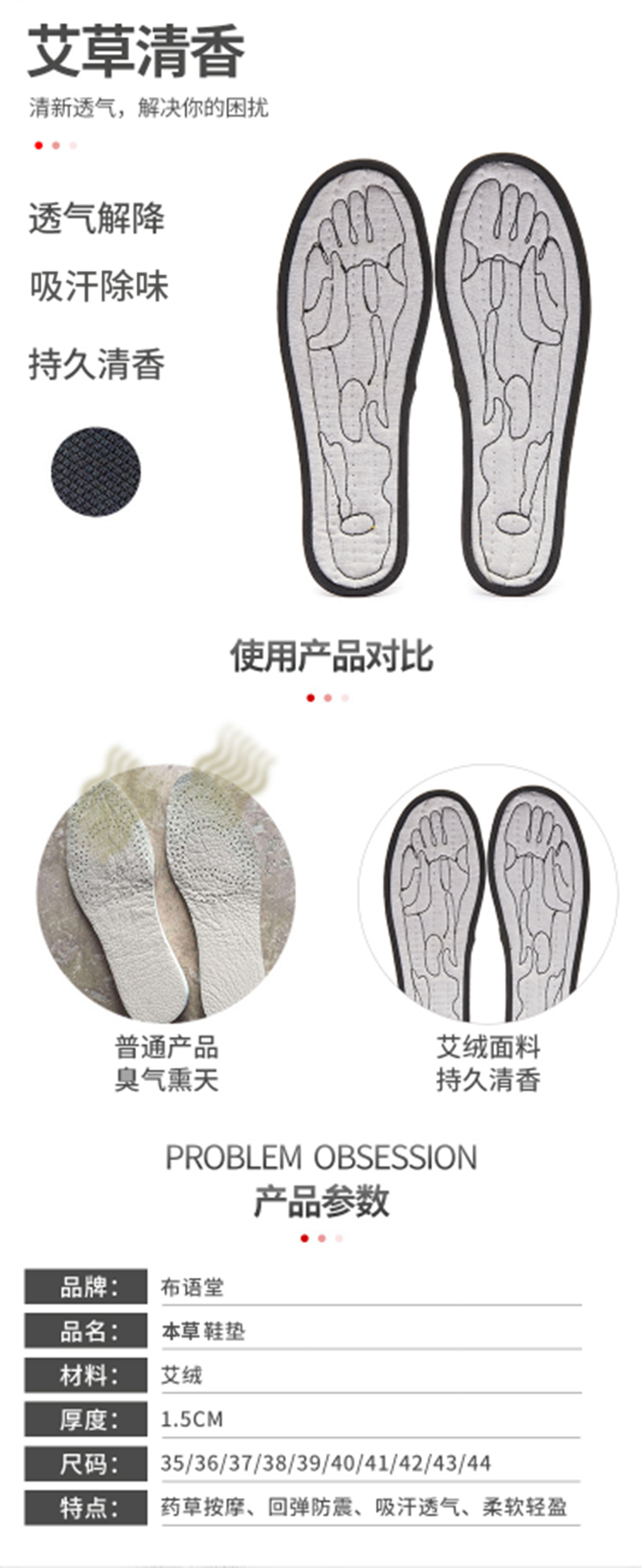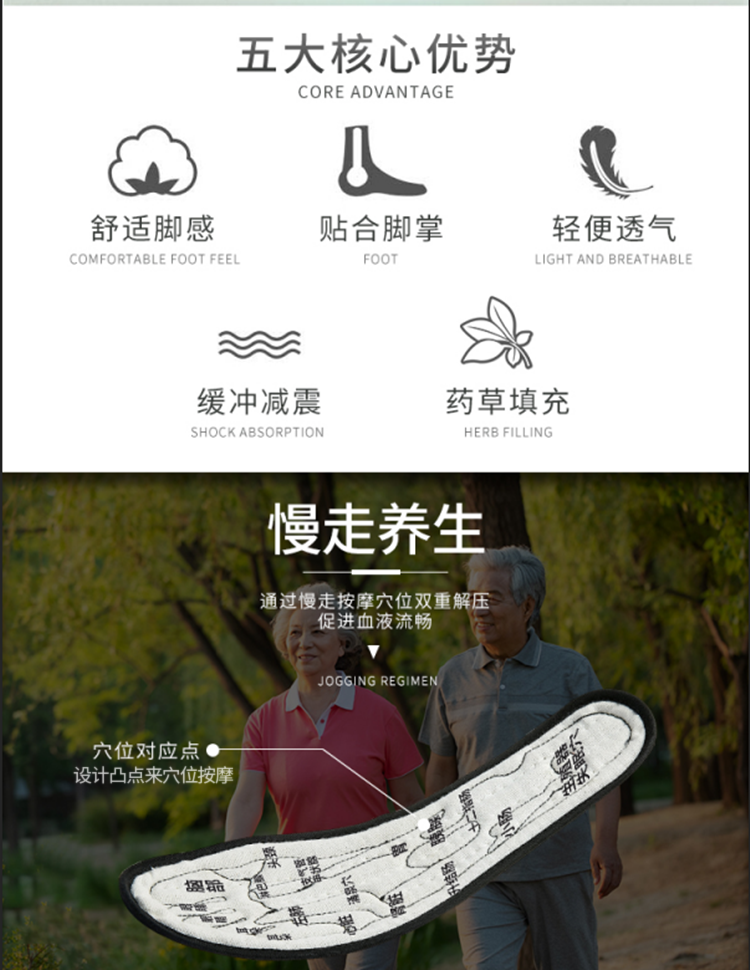 根据脚底穴位设计凸点来按摩的本草鞋垫【下单备注可指定码数】