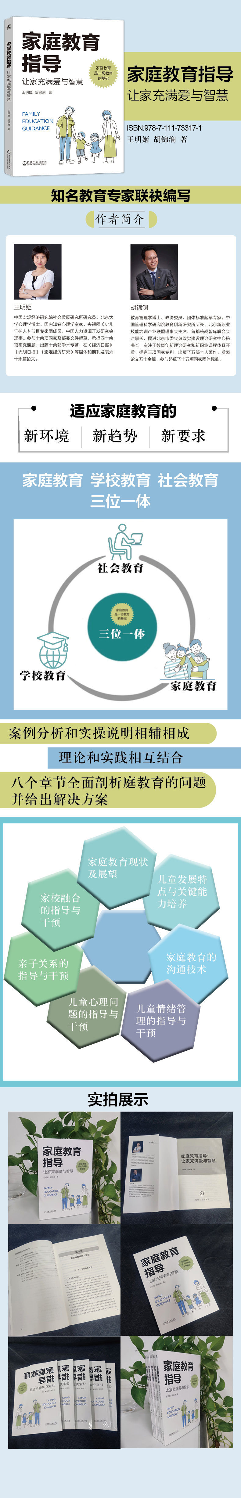 千里之行,始于足下。在现有的教育中,家庭教育占据非常高的地位并具有不可替代性,在新时代和新的发展阶段中,其自身既要与学校教育社会教育相融合,发挥育人的独特功能,又要结合科学的教育观念,大胆实践,创新发展,不断进步,彰显其自身的独特价值。为适应家庭教育发展的新环境、新趋势、新要求,我们编写了本书其内容涵盖家庭教育的现状及展望,不同阶段儿童能力的培养,家庭教育的影响因素、流程等八个部分,针对家庭教育中的问题,精准分析说明结构清晰明了。书中既有理论讲解,还有大量实操说明与案例分析,理论和实践相结合,具有很强的针对性与可操作性。本书适合广大教育工作者阅读,也可作为父母教育孩子的实践指南。