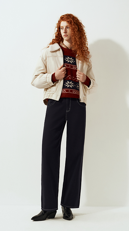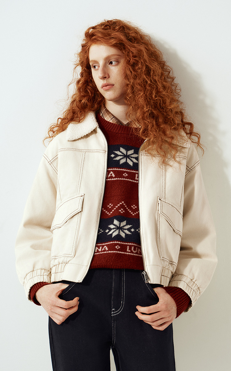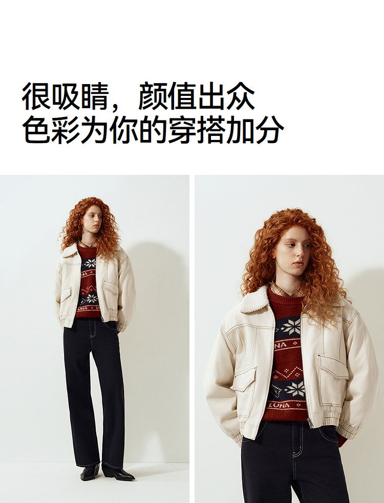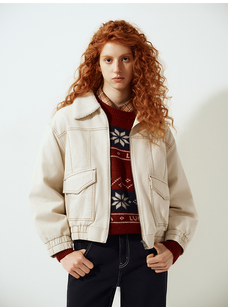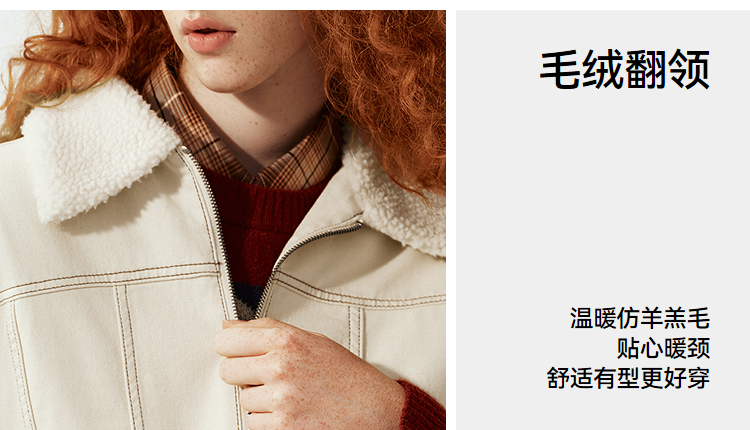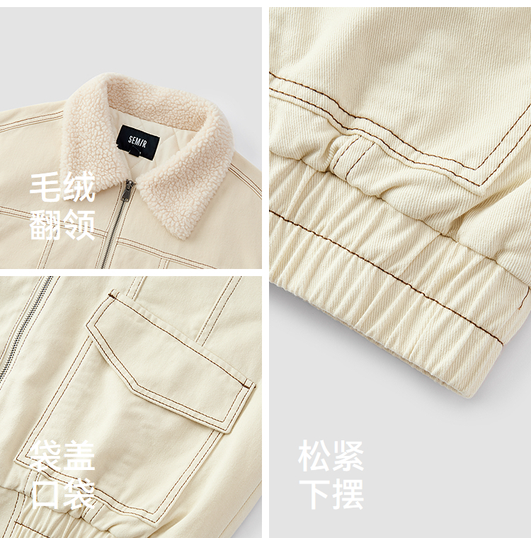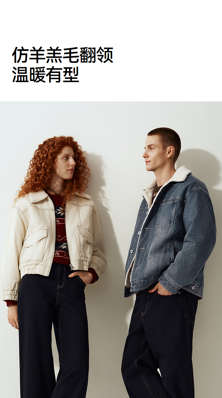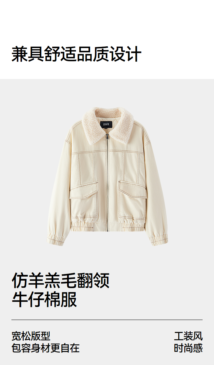 森马牛仔外套女冬季仿羊羔毛翻领夹棉宽松2025新款潮酷工装风夹克