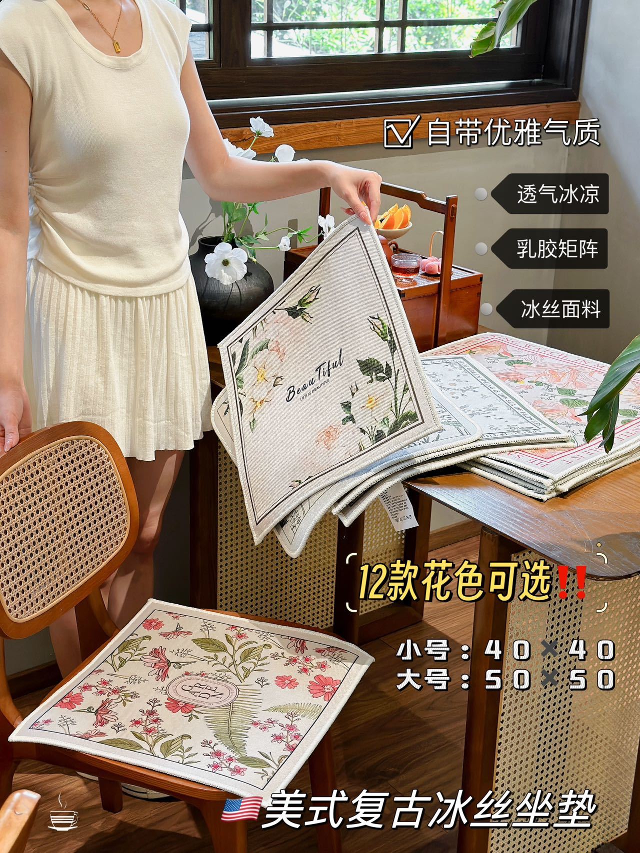 (50X50)🌞夏日新宠【美式复古冰丝坐垫】,降温神器🧊久坐打工人彻底离不开这个冰丝坐垫了!! ✨夏天来啦,久坐的屁股出汗🔥,黏着裤子真的很难受!!