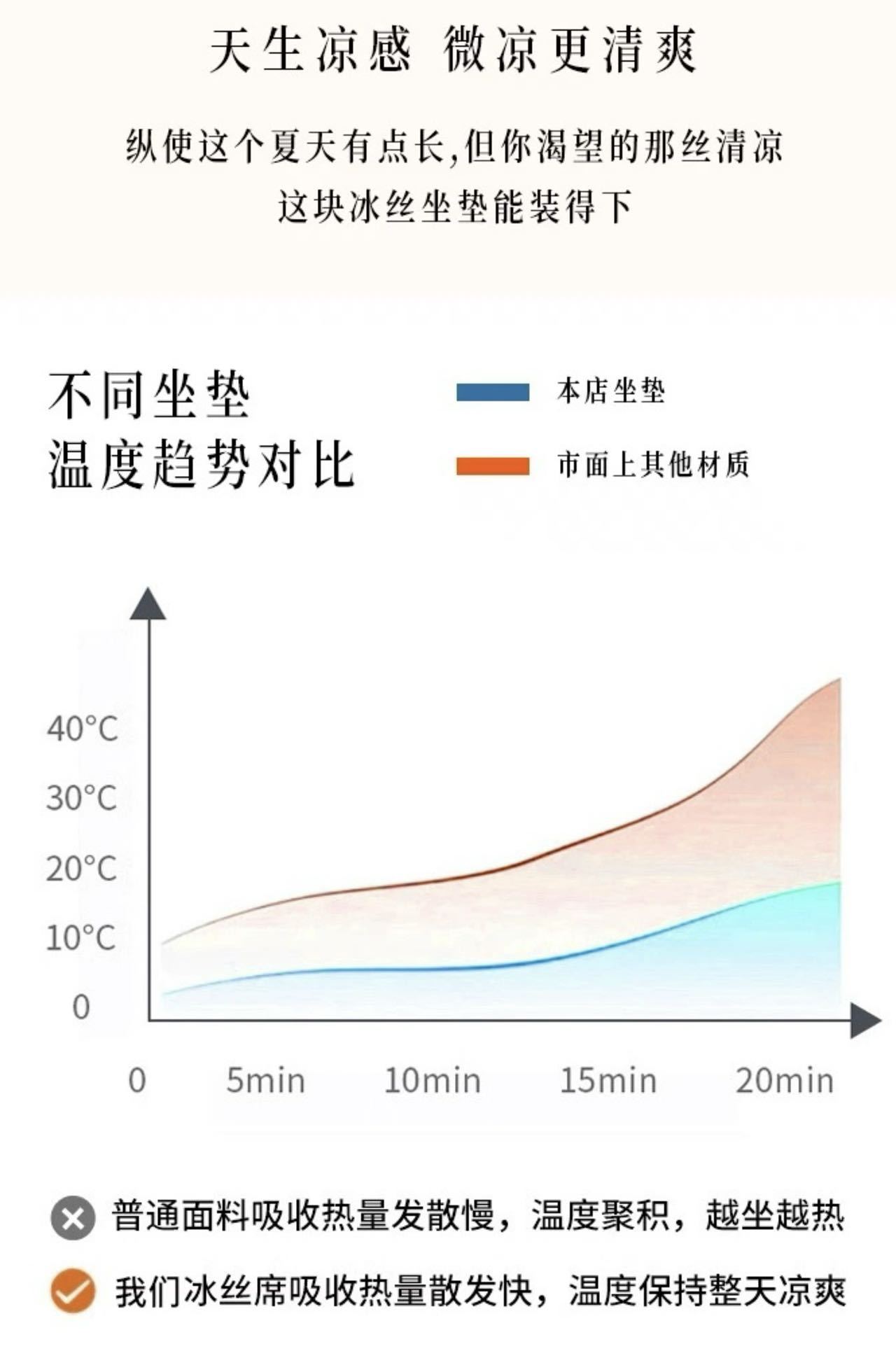 冰丝坐垫采用清凉科技 持久凉感,吸热降温,高效组合 平滑表面,细腻手感,让你享受每一次接触 ⭐底部乳胶矩阵设计,防滑稳固,让你在享受清凉的同时,安全无忧🧊