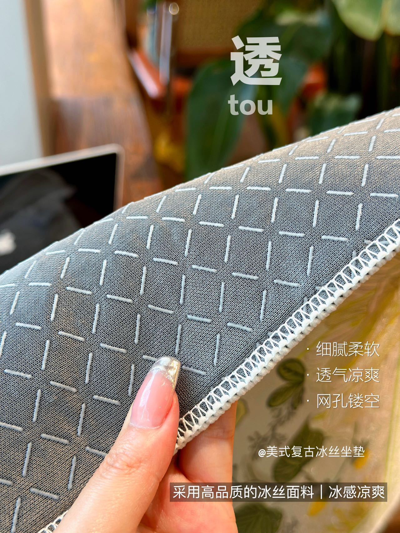 美式系列则充满了浪漫与温馨 这个坐垫的材质真的是太棒了! 采用高品质的冰丝面料 冰感凉爽,舒适可以在炎热的 夏日里也能享受到清新舒适的体验 坐在上面感觉就像有阵阵凉风吹过 太舒服啦!