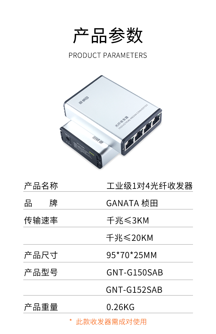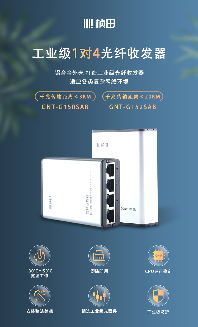 1对4千兆铝合金工业级光纤收发器G150SAB/G152SAB