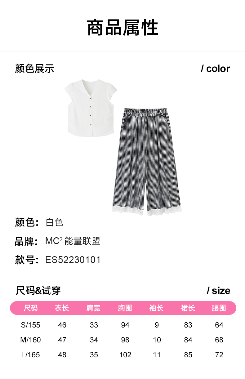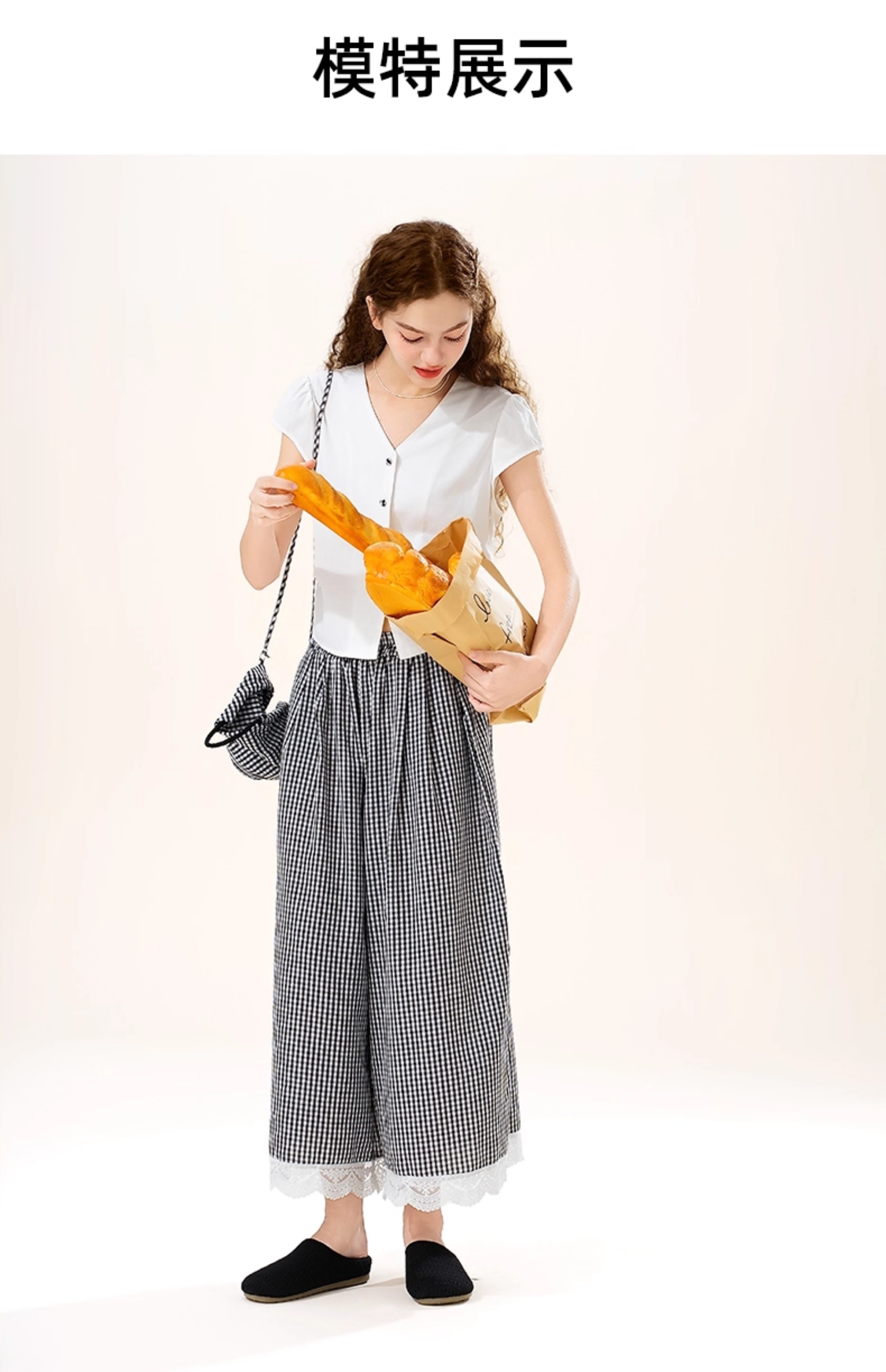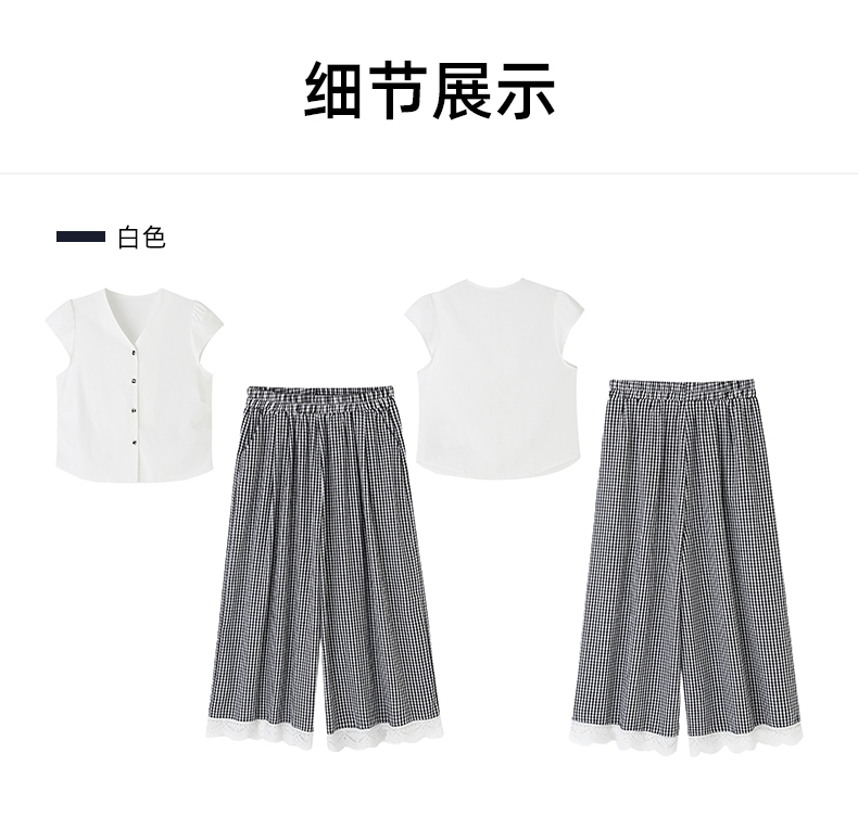 mc2半袖小衫配格子阔腿两件套女装夏季新款时尚好看百搭洋气