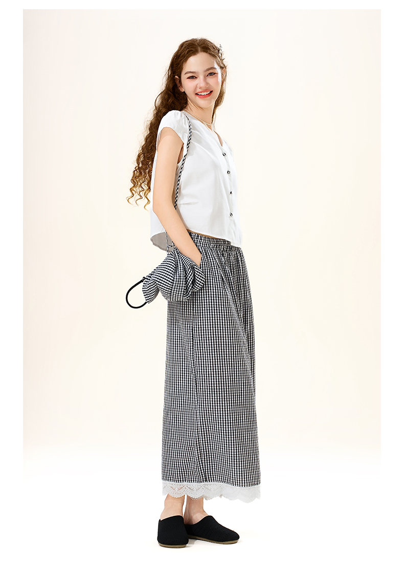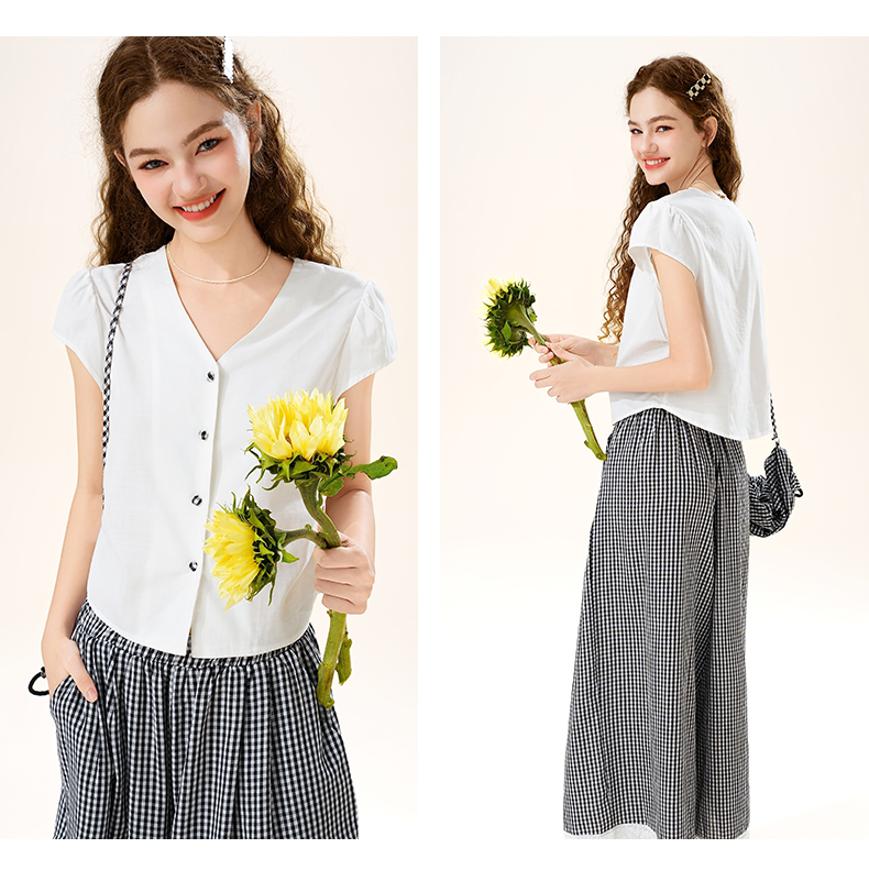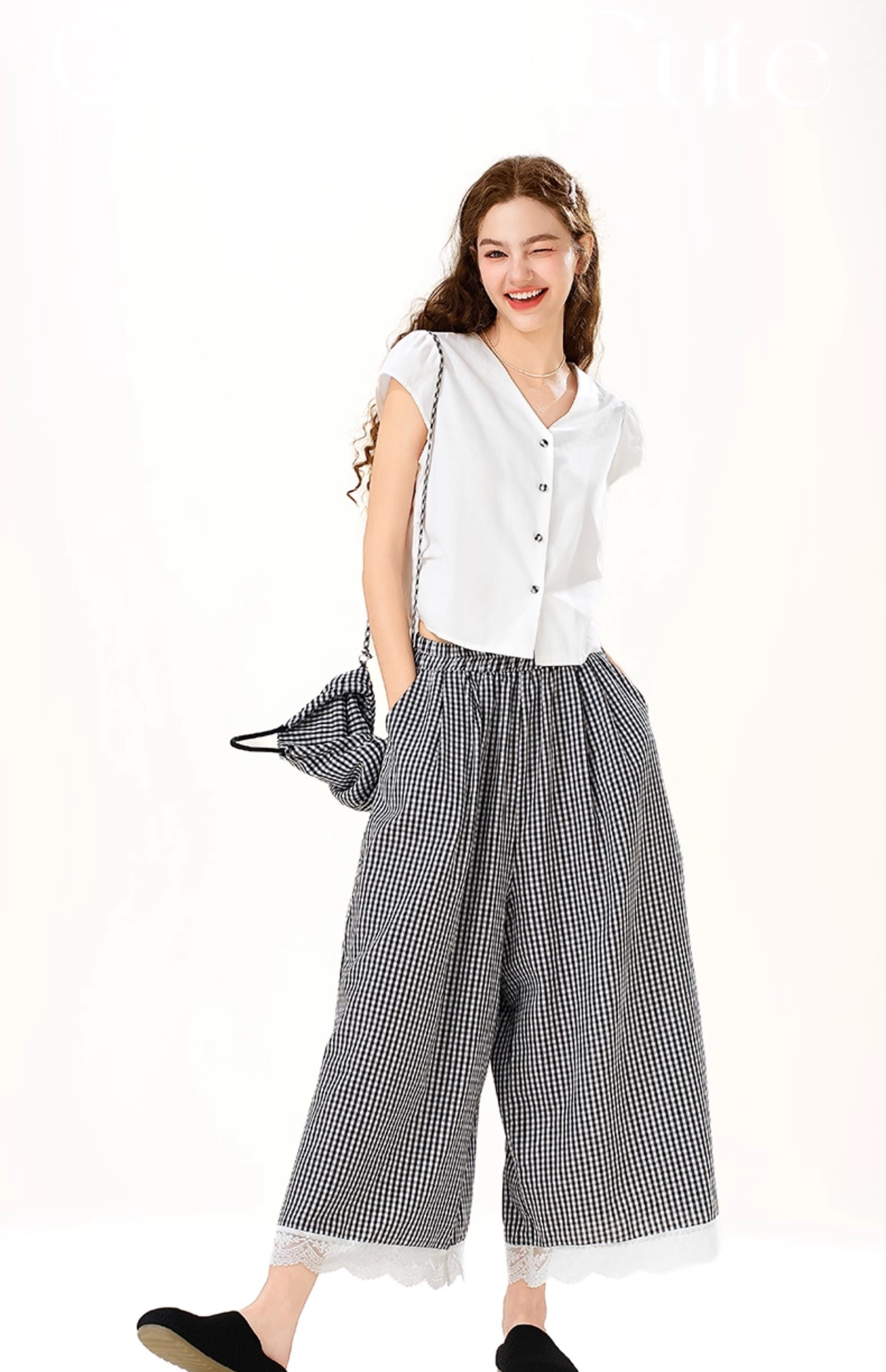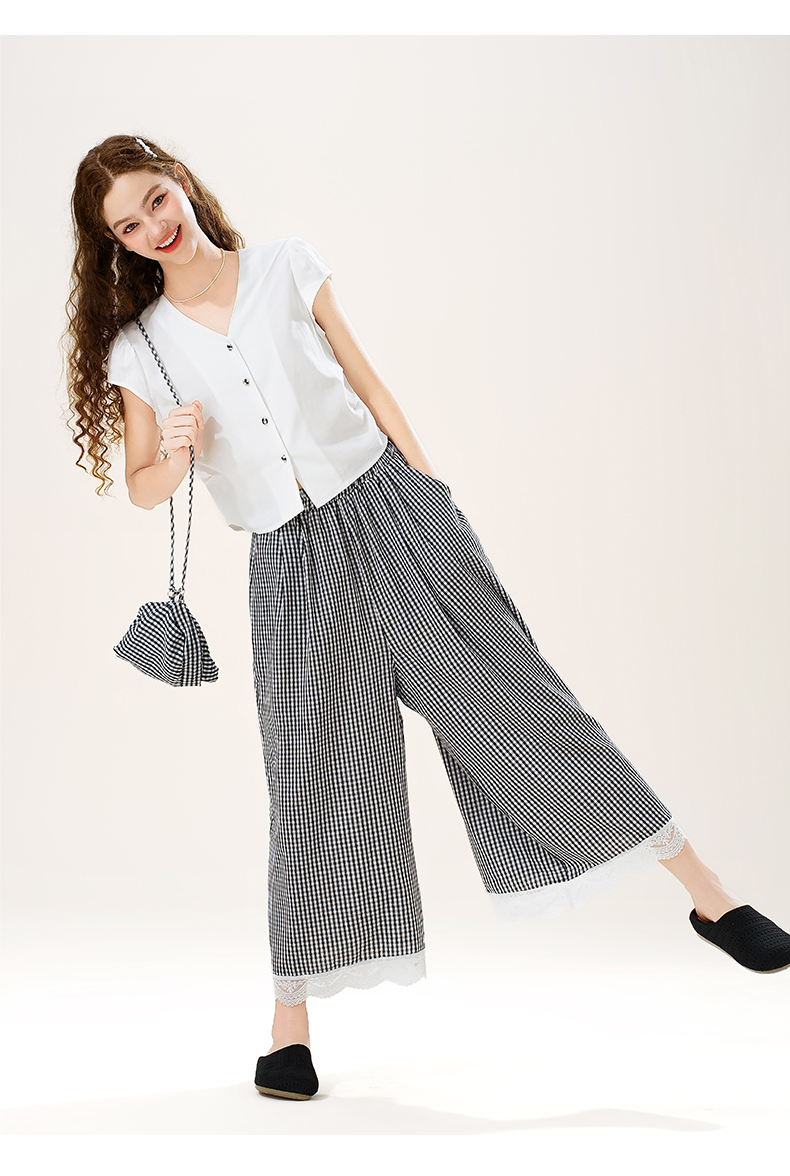 mc2半袖小衫配格子阔腿两件套女装夏季新款时尚好看百搭洋气