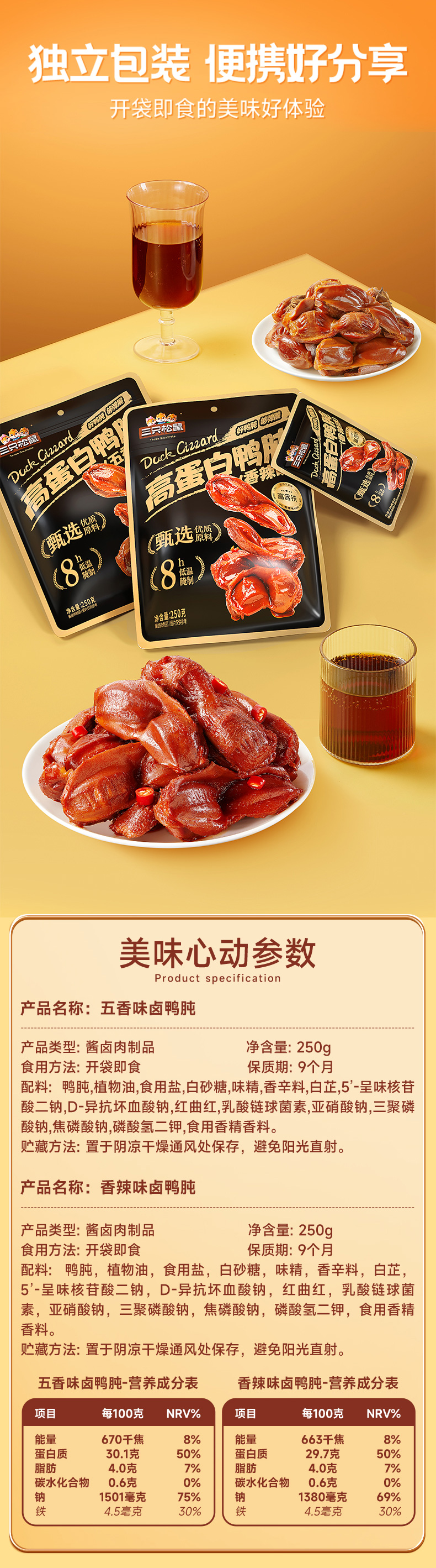 【新品】高蛋白鸭肫/香辣味//五香味250克-zl