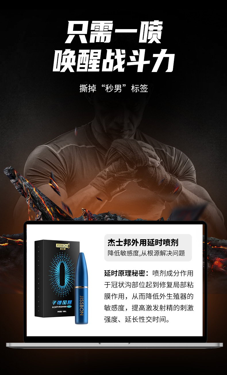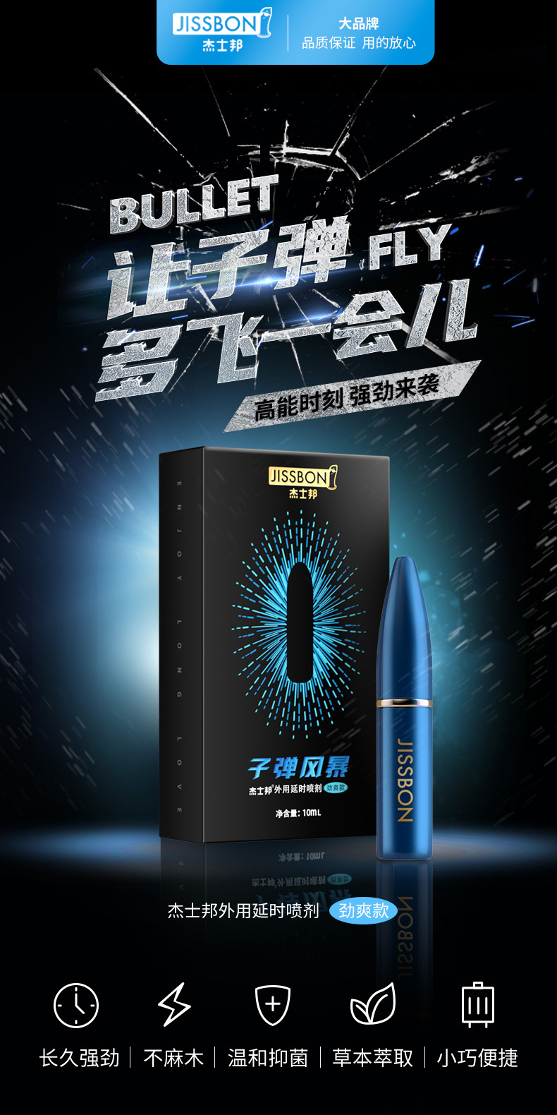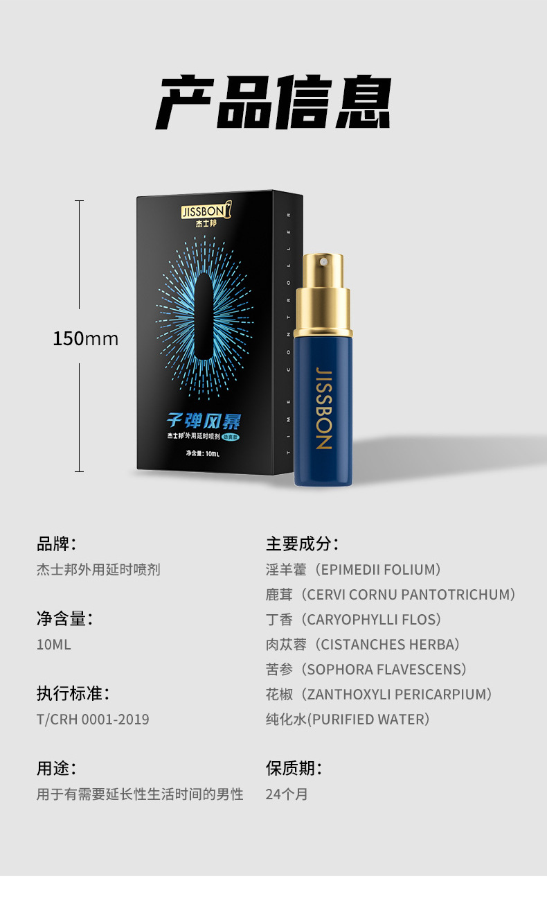 杰士邦 延时喷雾 延时喷剂 湿巾 延时环 男用成人情趣用品 加强版子弹风暴劲爽款10ml