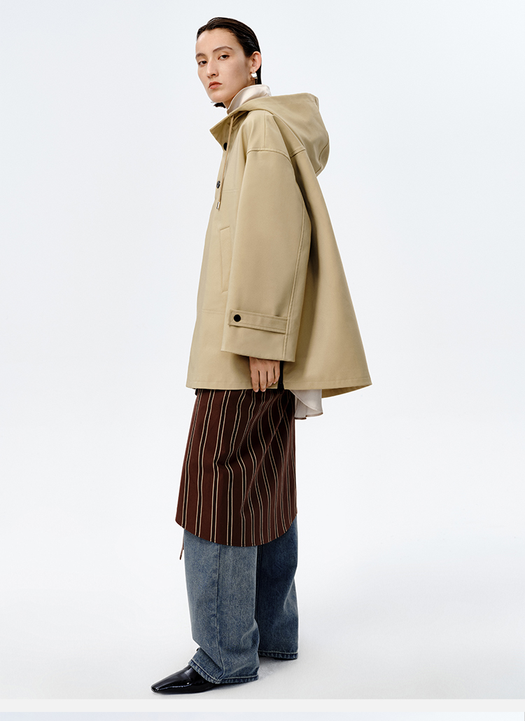 HIDEMI极简连帽休闲廓形户外感风衣