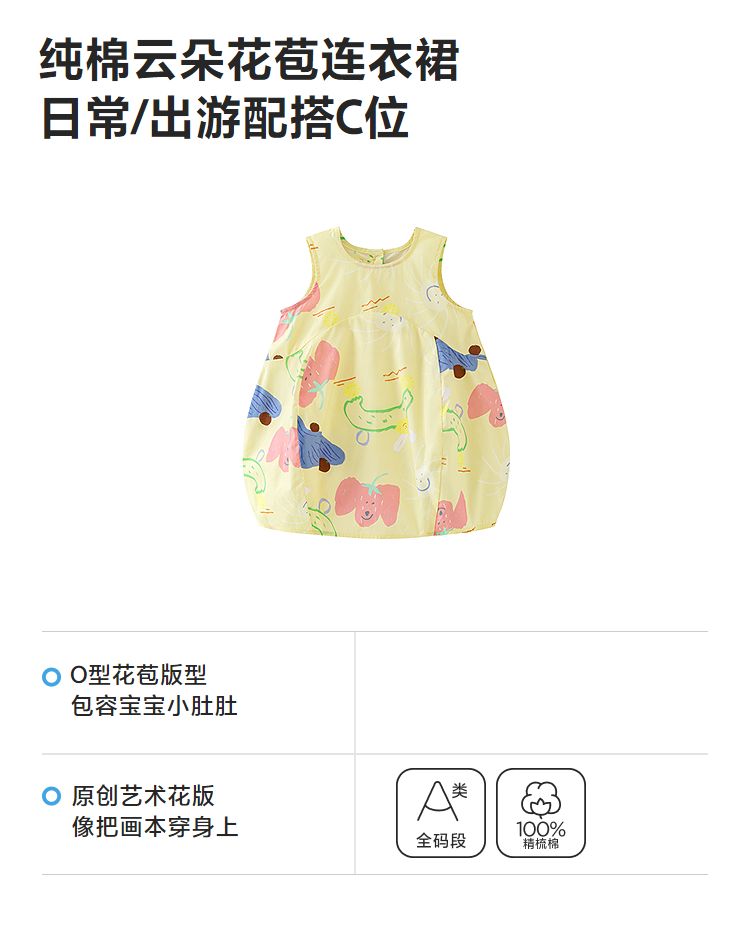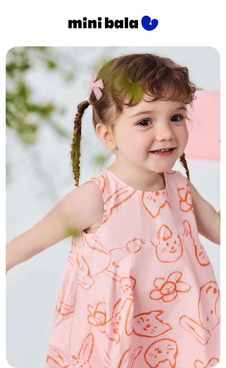 迷你巴拉巴拉女童裙子宝宝亲肤舒适透气100%纯棉艺术连衣裙2026夏