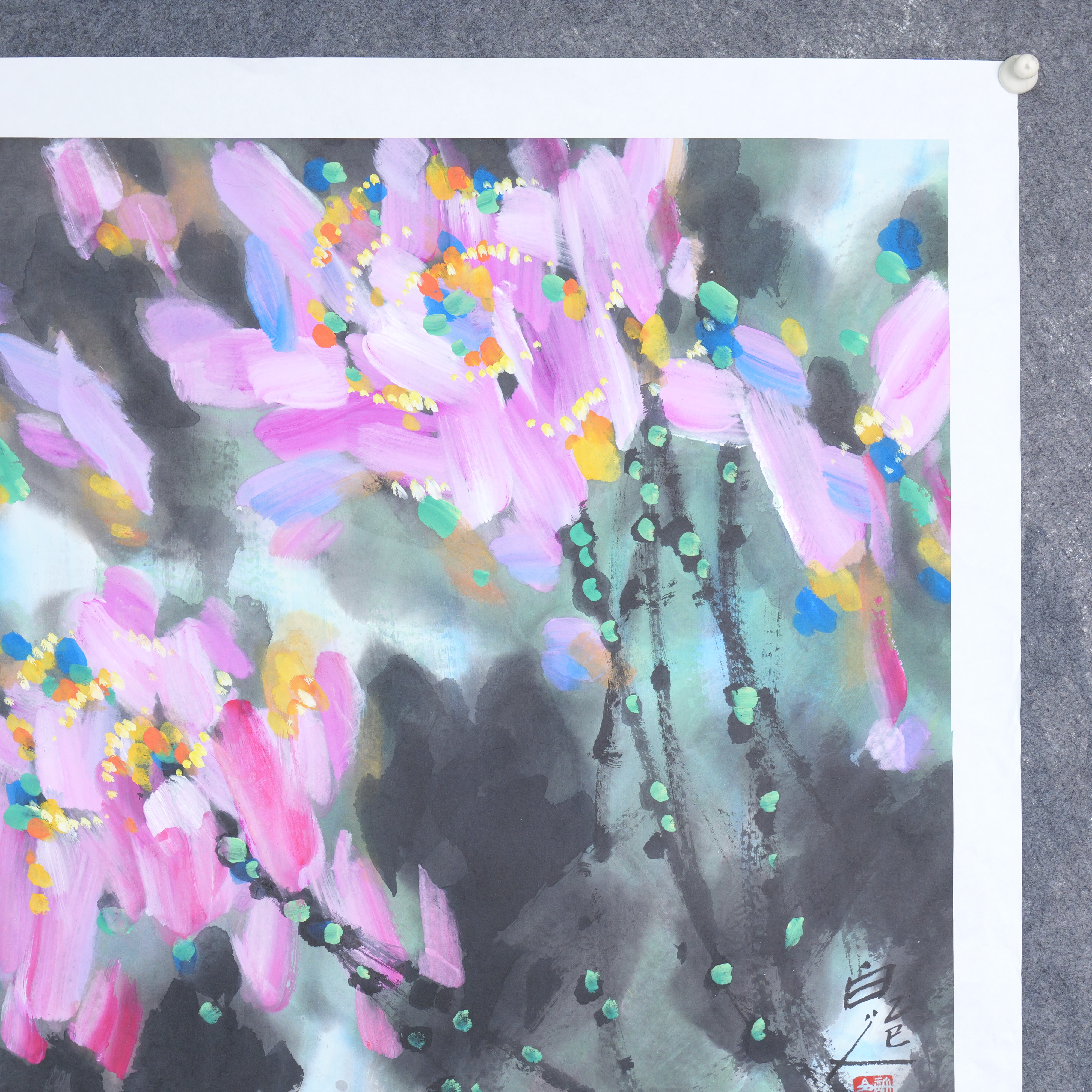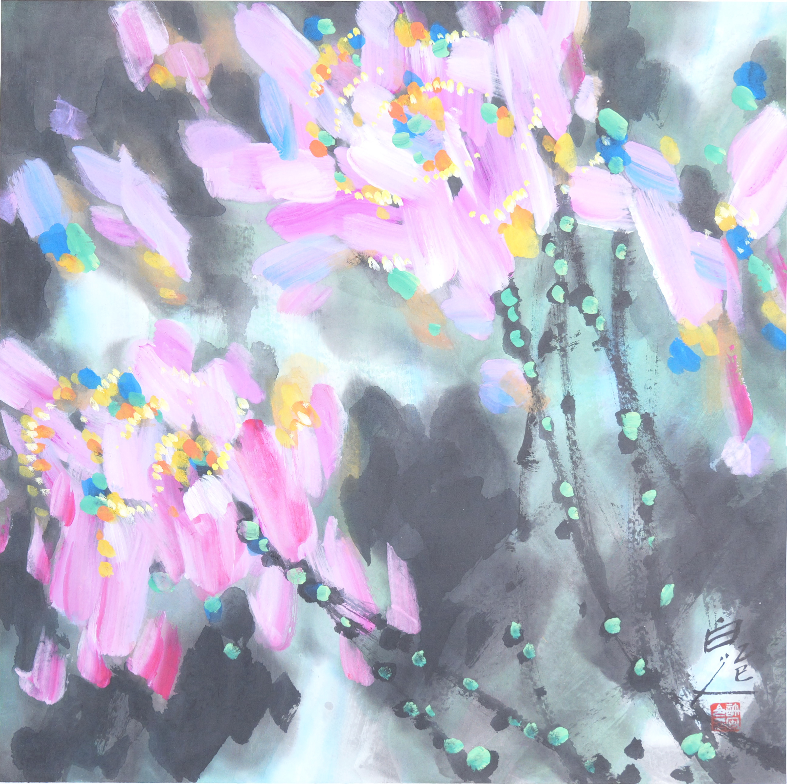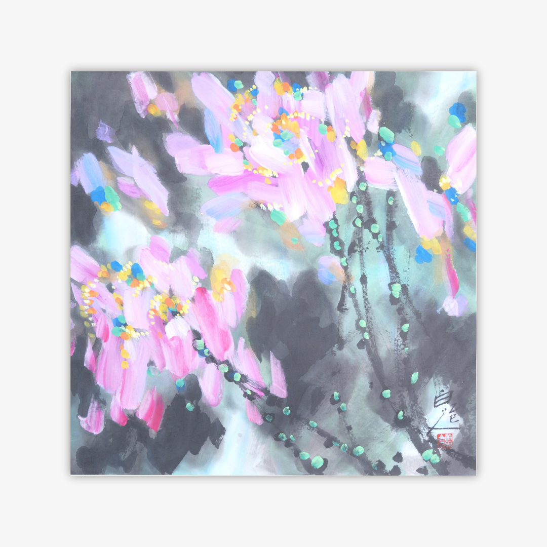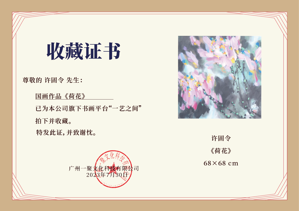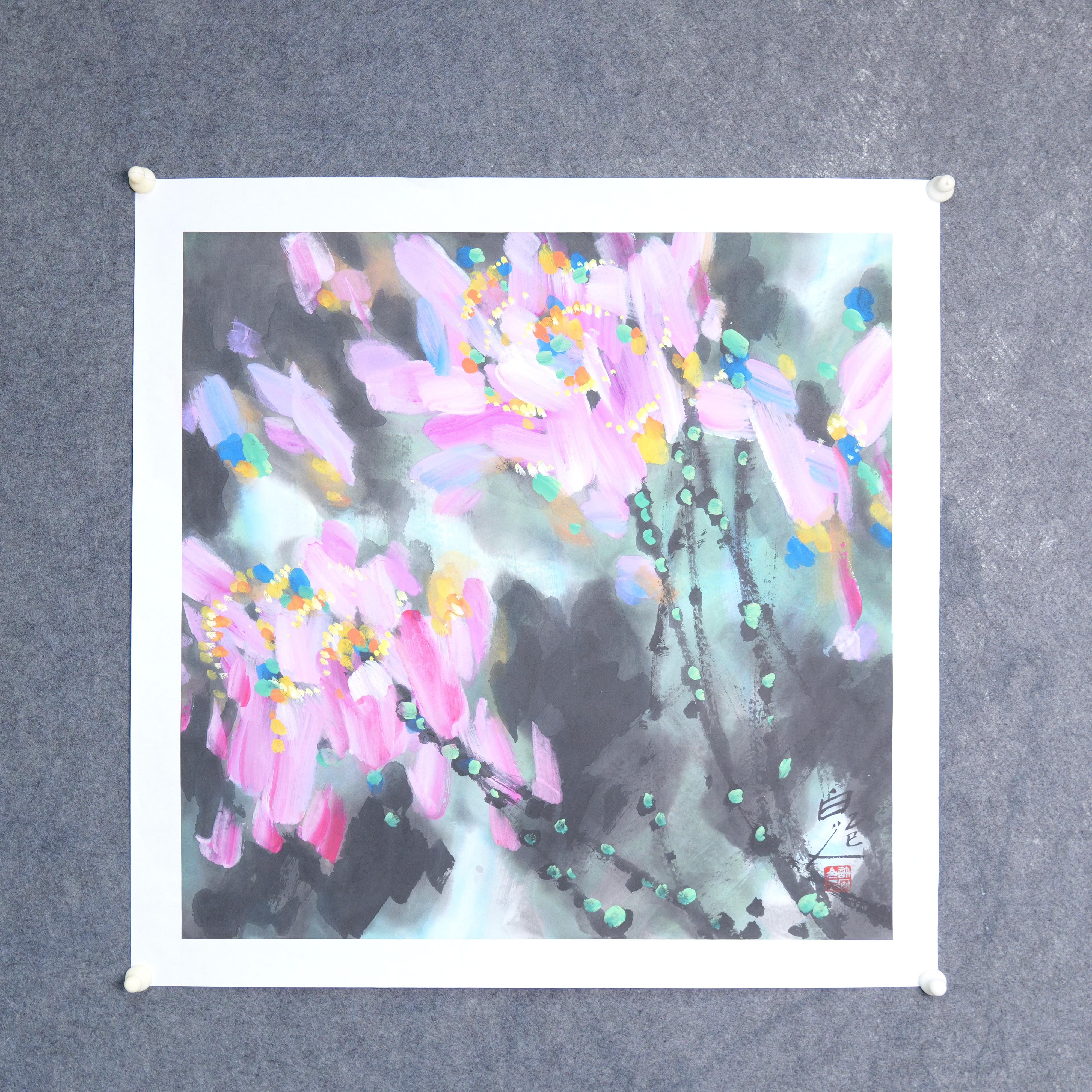 许固令《荷花》国画原作68CM*68CM 手绘宣纸荷花斗方作品【GH0507】