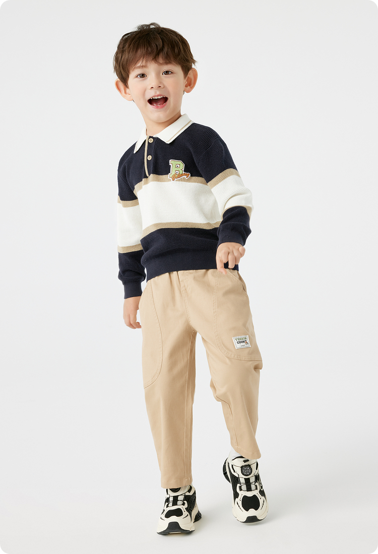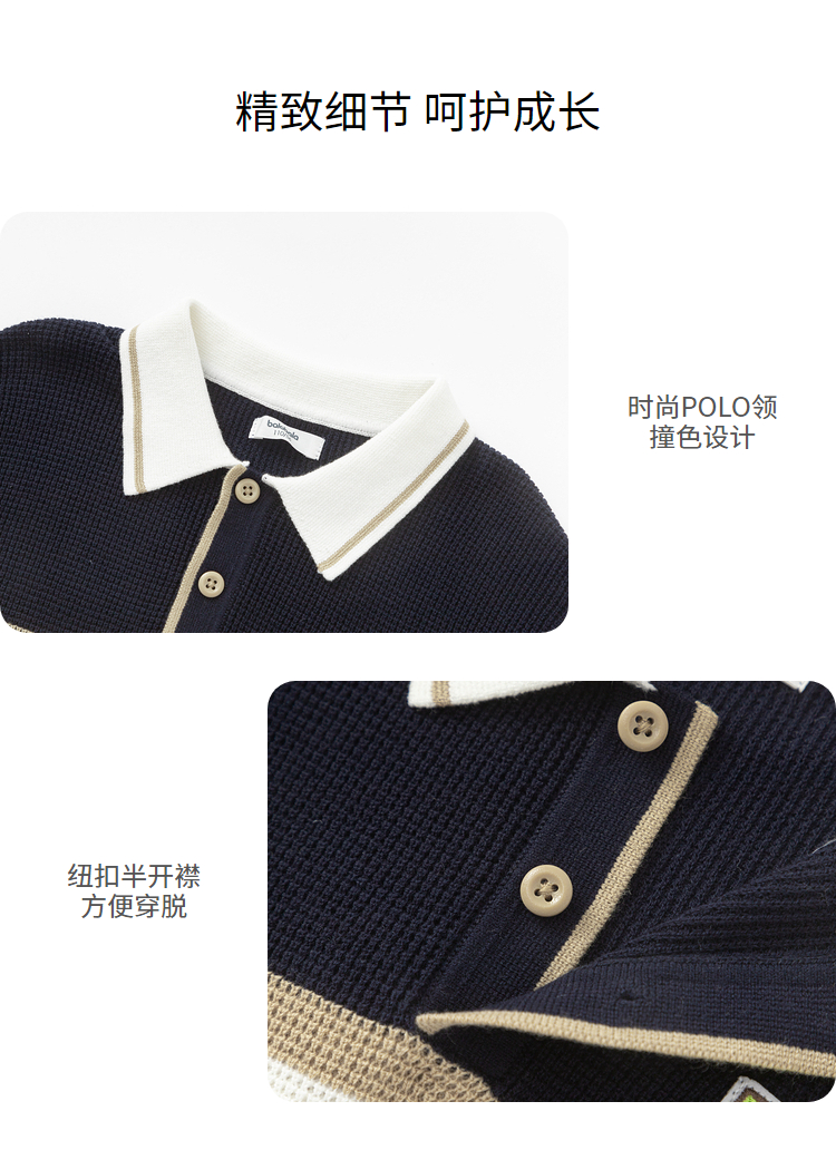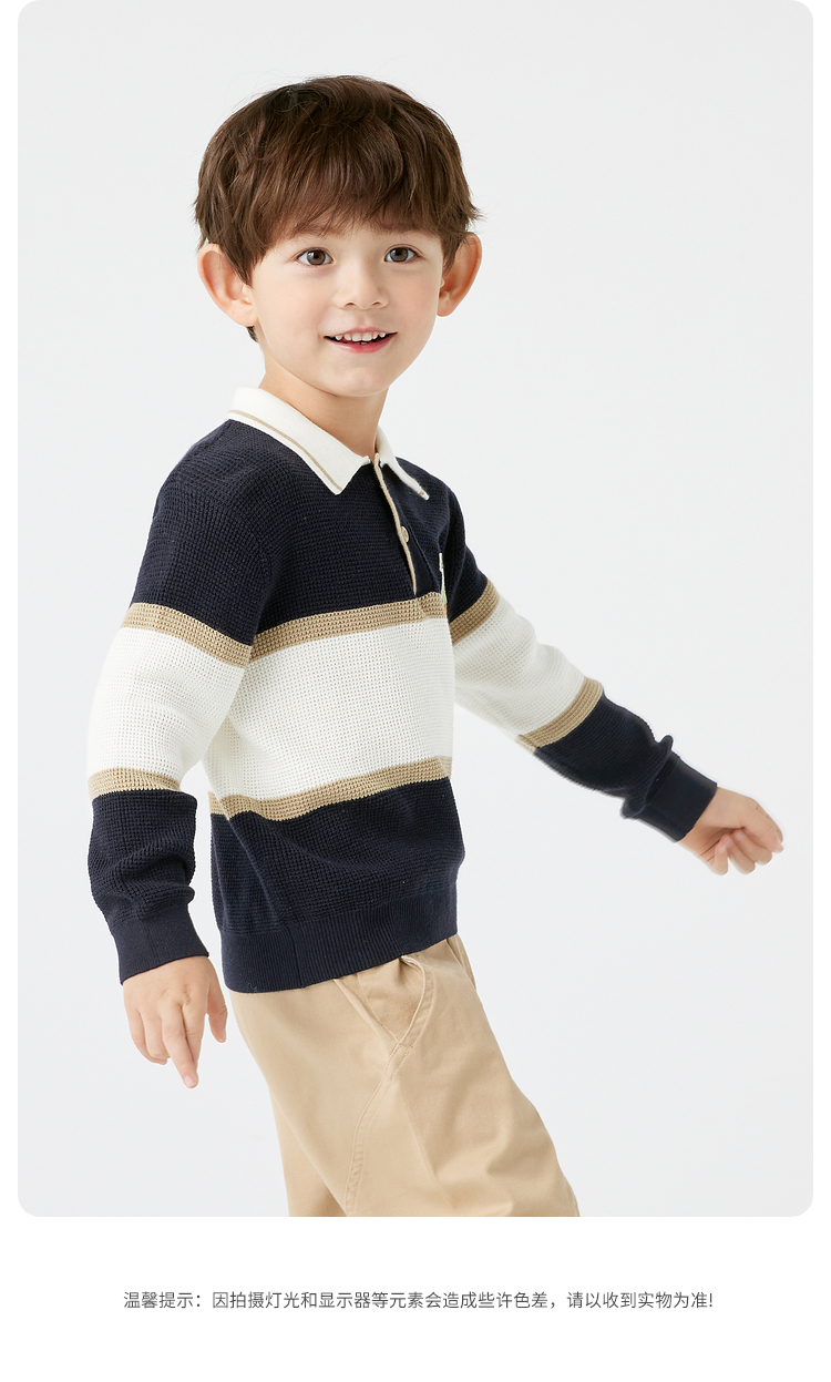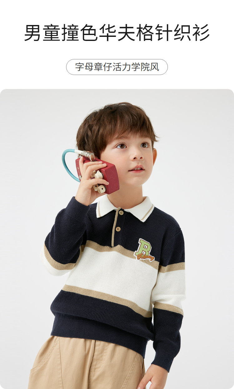 巴拉巴拉童装儿童毛衣华夫格学院风针织衫男童秋装POLO领上衣百搭