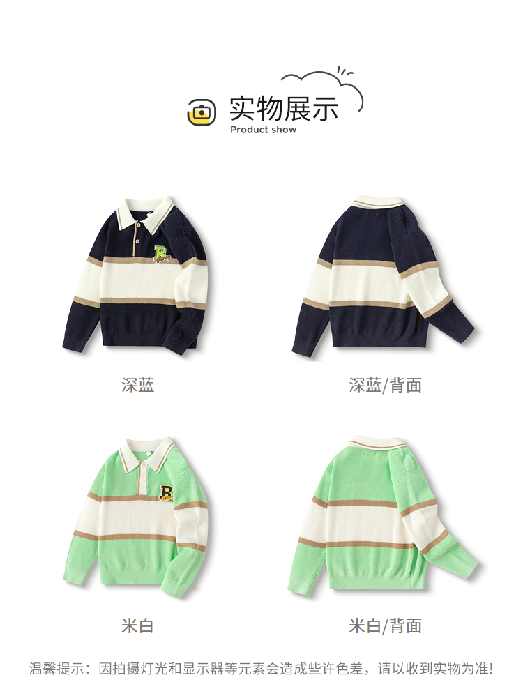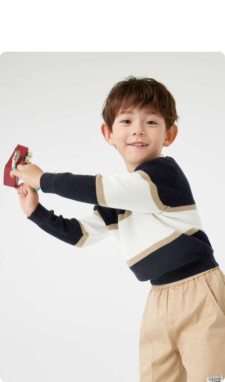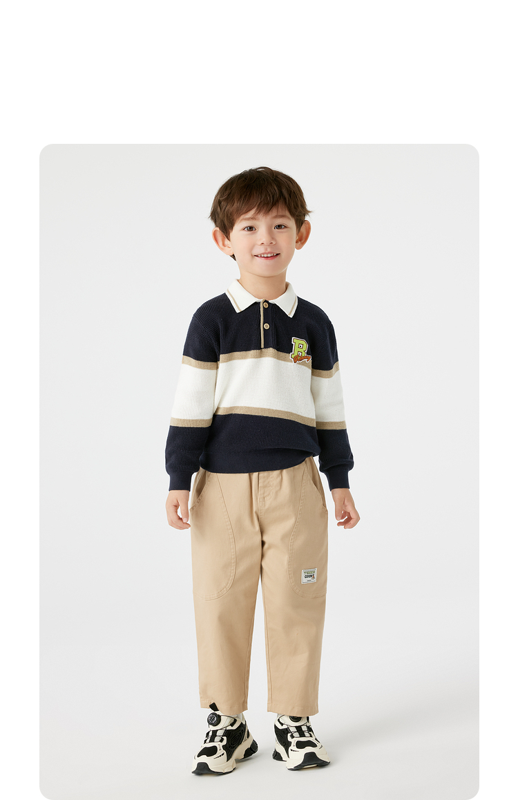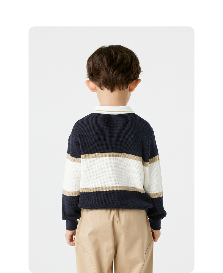 巴拉巴拉童装儿童毛衣华夫格学院风针织衫男童秋装POLO领上衣百搭