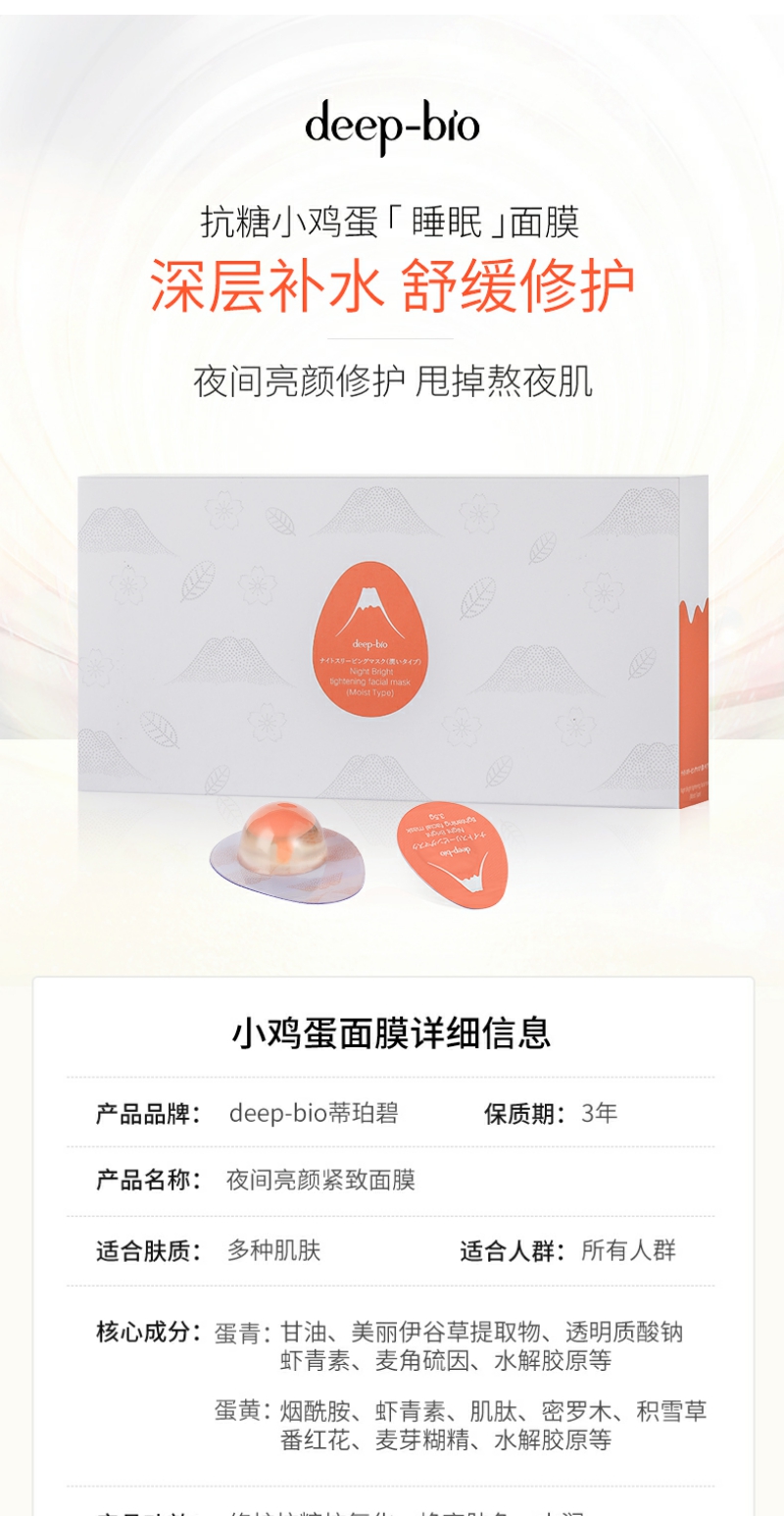【YZ】DEEP-BIO小鸡蛋睡眠面膜3盒一组补水保湿涂抹式面膜夜间舒缓修护提亮肤色