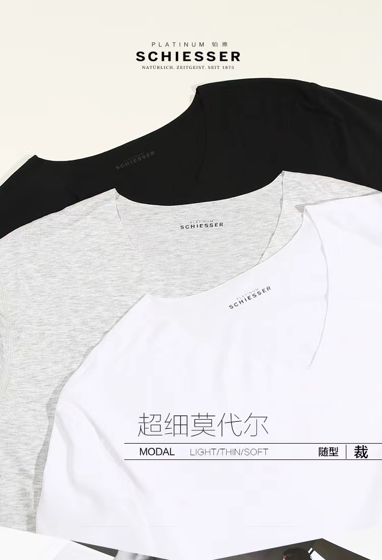 SCHIESSER 德国舒雅铂雅高端透气超细莫代尔无痕T恤95/18659M