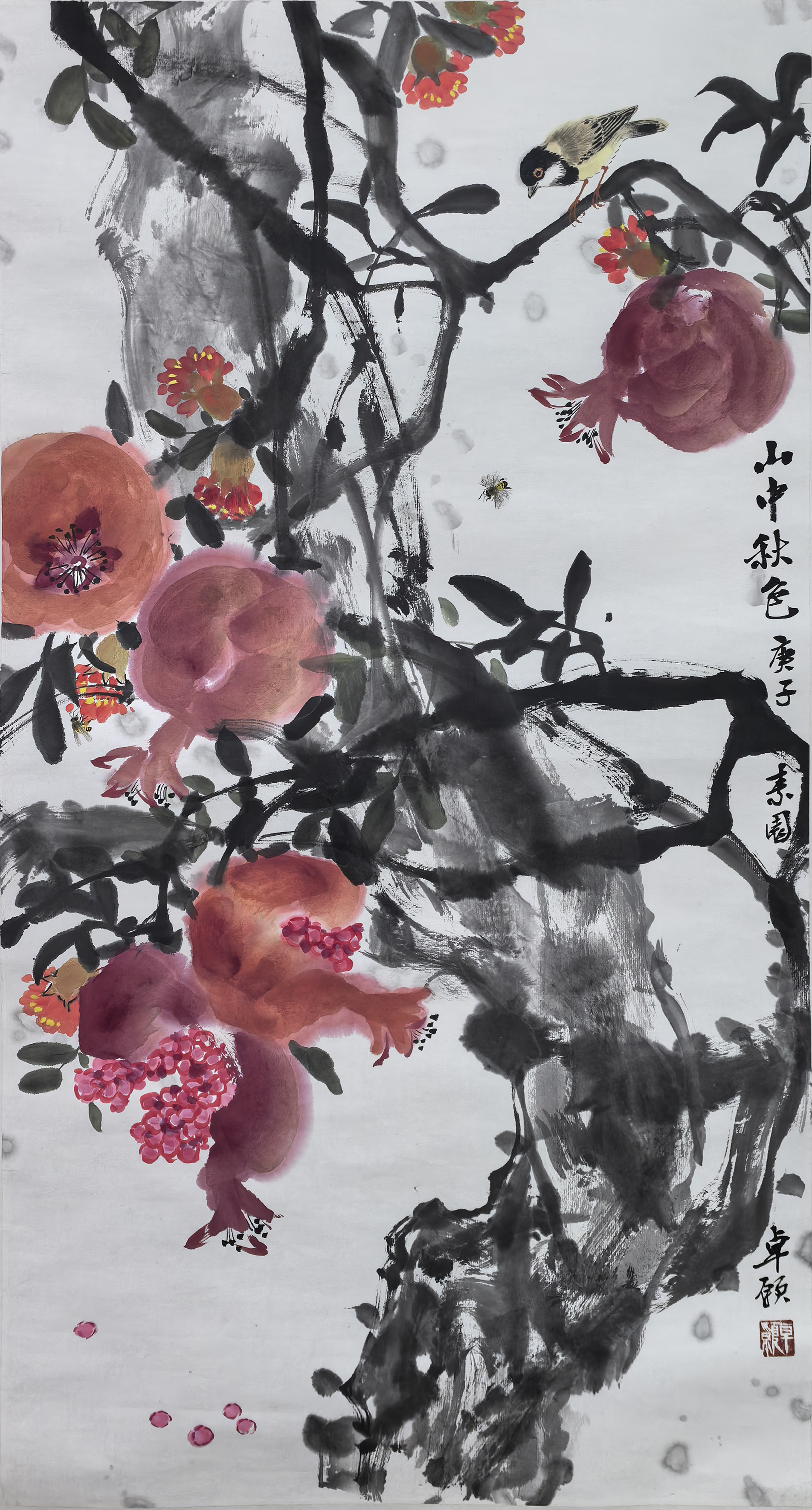 卓愿《山中秋色》98x48CM 手绘纸本宣纸国画作品