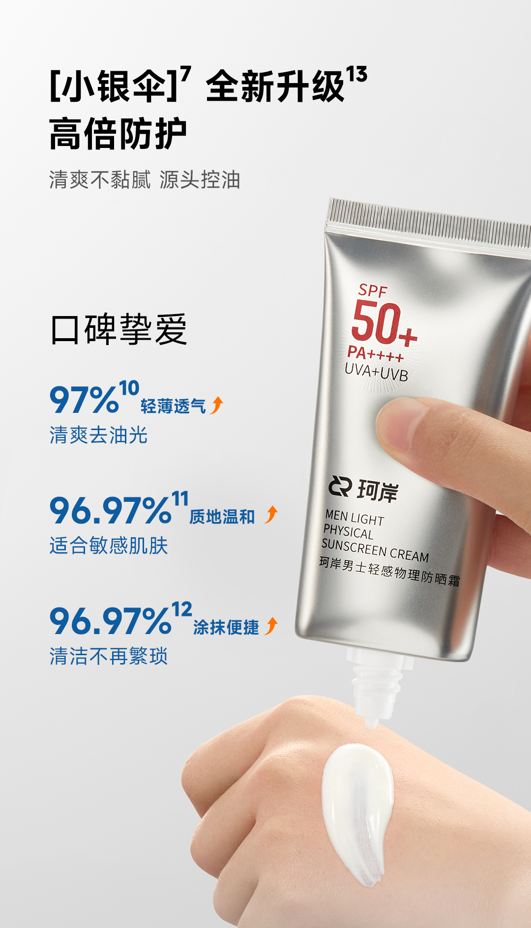 【华熙直营】华熙直营珂岸男士轻感物理防晒霜50g/支 SPF50+ PA++++