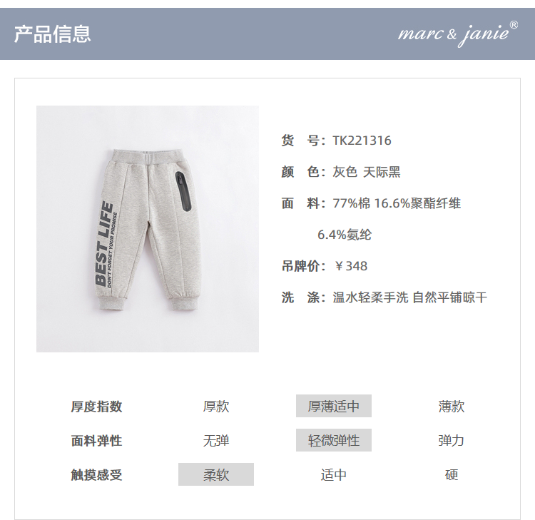【3D空气棉】马克珍妮秋装新款 男童个性字母运动长裤221316