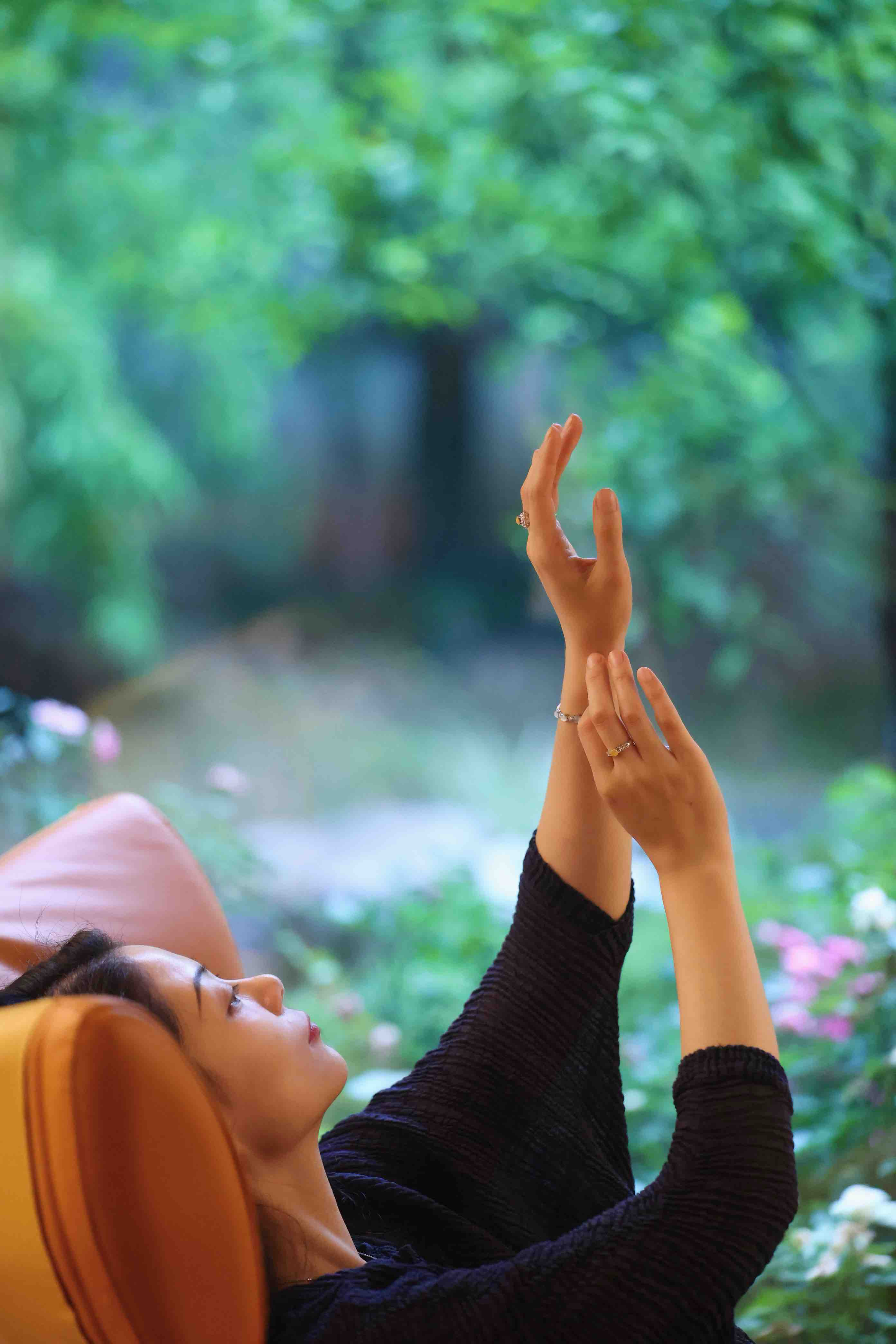 特别喜欢的一个镜头是在躺椅上,身体埋在软软的靠背中,那是一种松弛的状态,也是这一天中可以眯上眼睛体验松弛的状态。