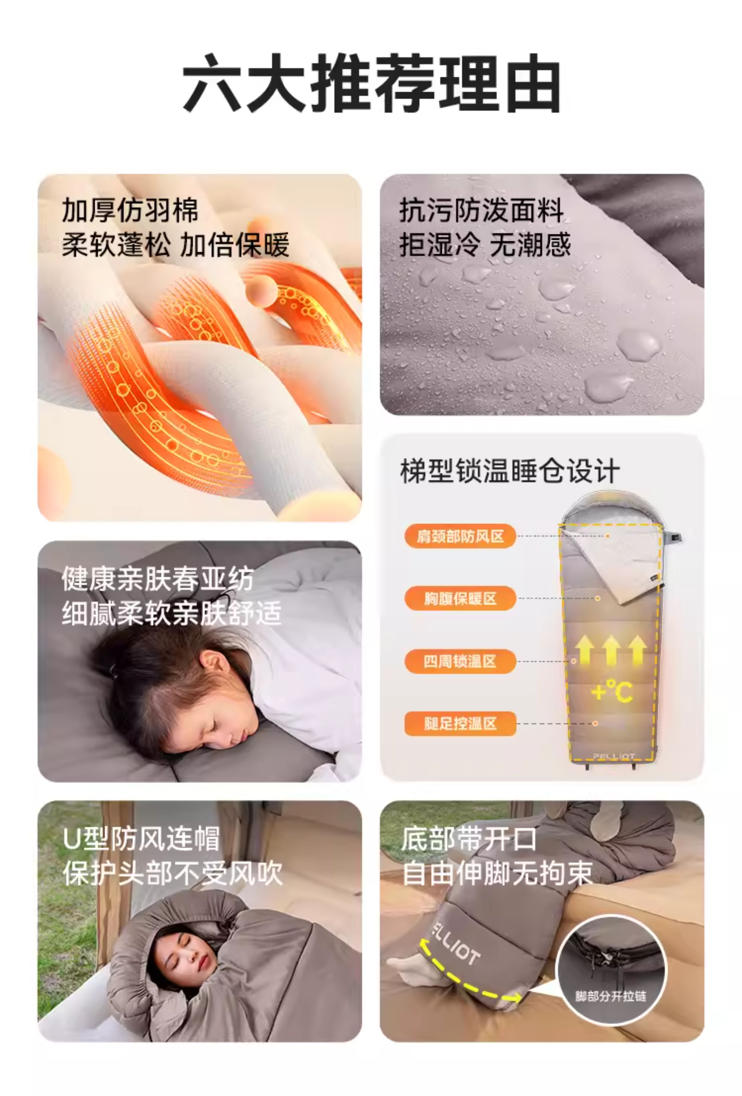 伯希和户外睡袋四季通用款成人露营便携徒步轻量化羽绒棉被子两用