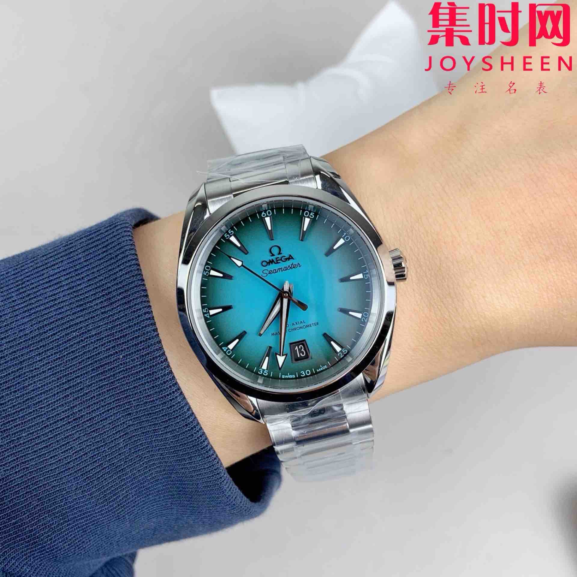 欧米茄VS海马150米系列 绿松石 6点位日历 Aqua Terra 150米腕表 8800一体机 表径38mm 中性腕表 男女皆可佩戴 小手腕福音